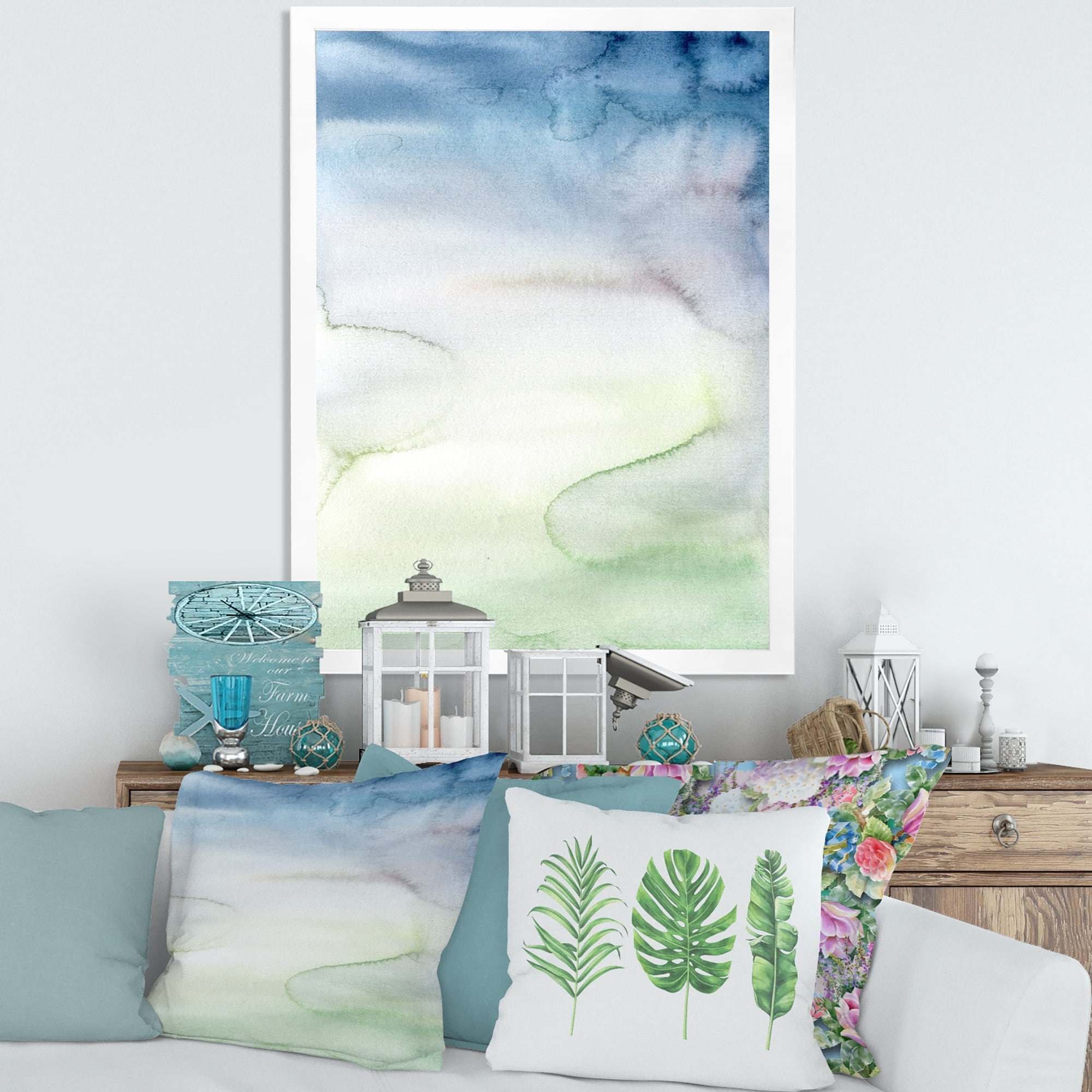 Designart "Pastel Abstract With Dark Blue Green & White Spots" Modern Framed Art Print
