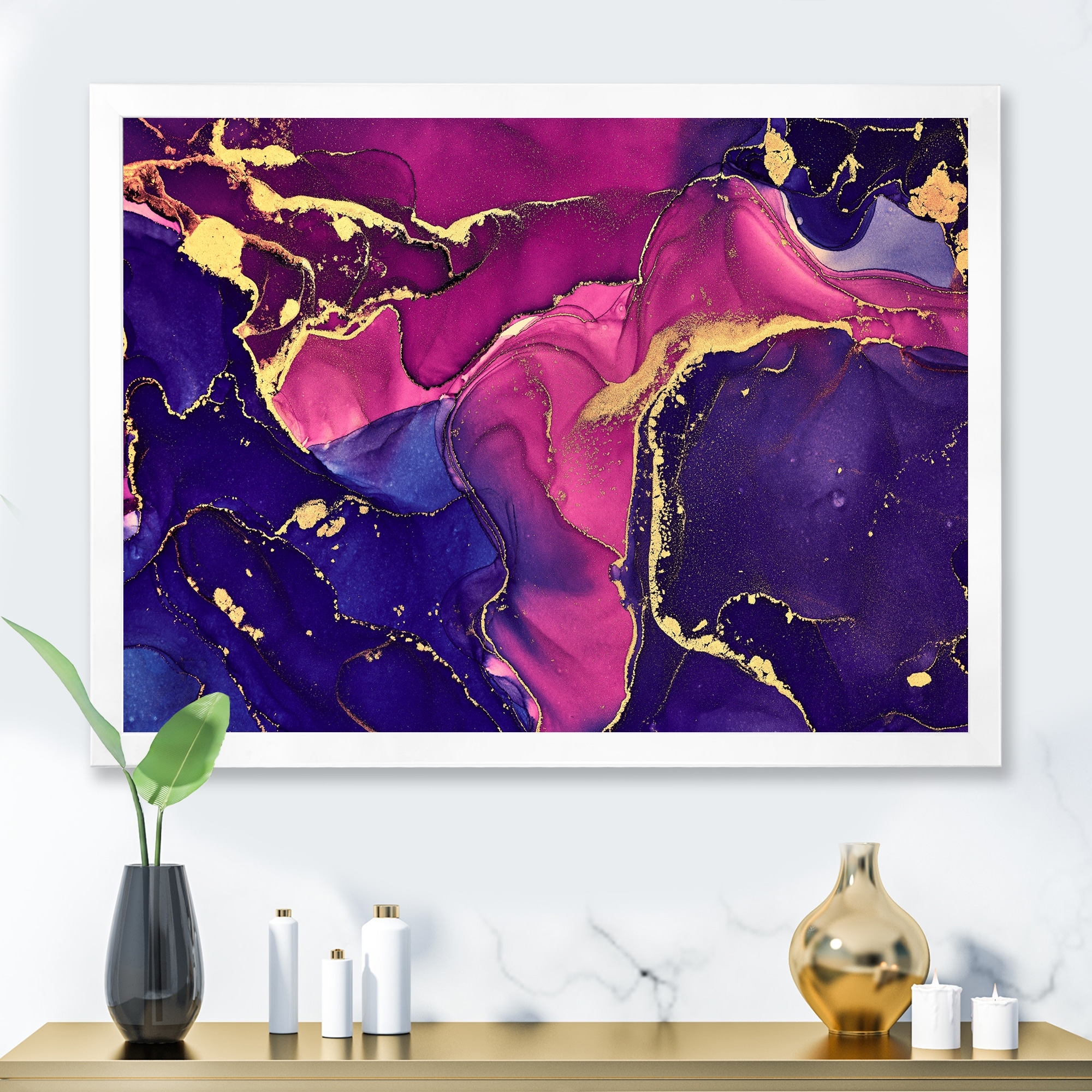 Designart "Purple And Blue Luxury Abstract Fluid Art IV" Modern Framed Art Print
