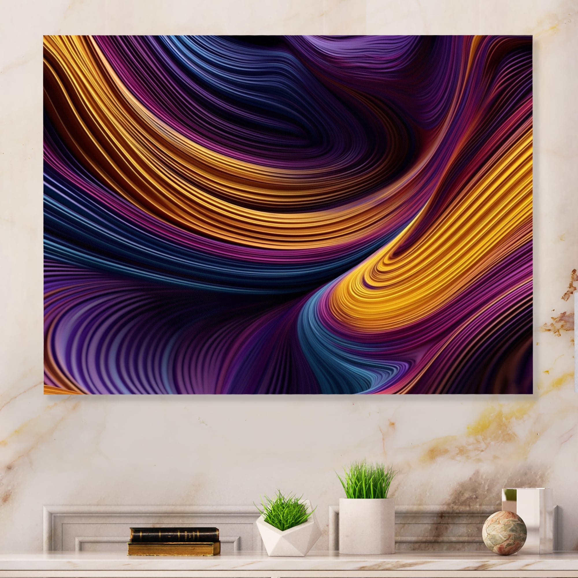 Designart "Purple Yellow Dancing Colors I" Modern Waves Metal Wall Art