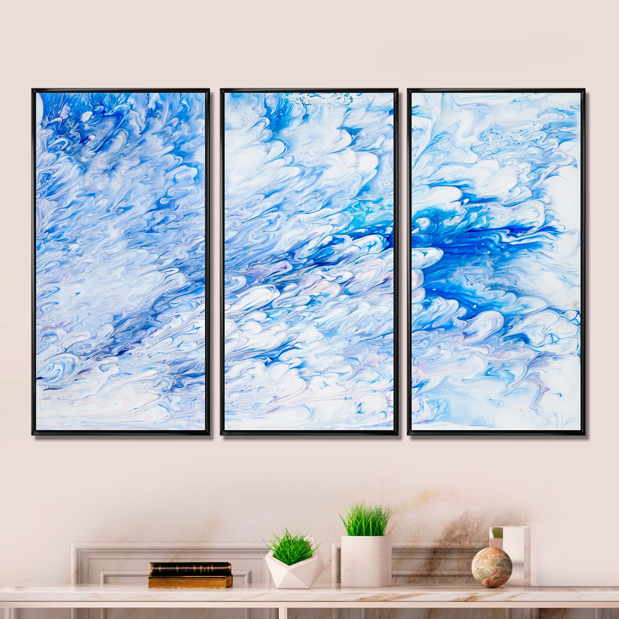 Designart "Blue And White Liquid Marble Art" Modern Framed Wall Decor Set of 3 - 4 Colors of Frames