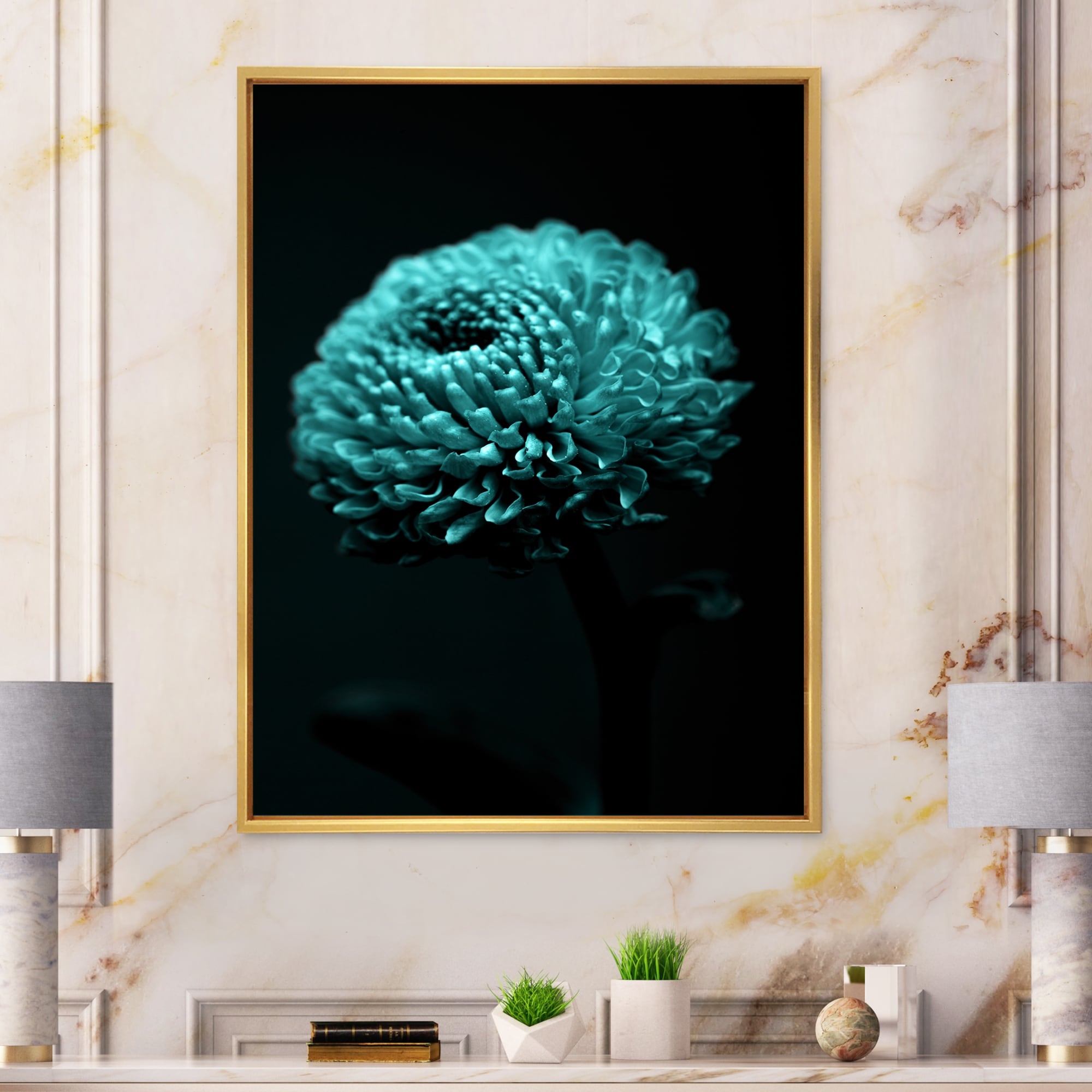 Designart "One Turquoise Flower" Abstract Framed Canvas Wall Art