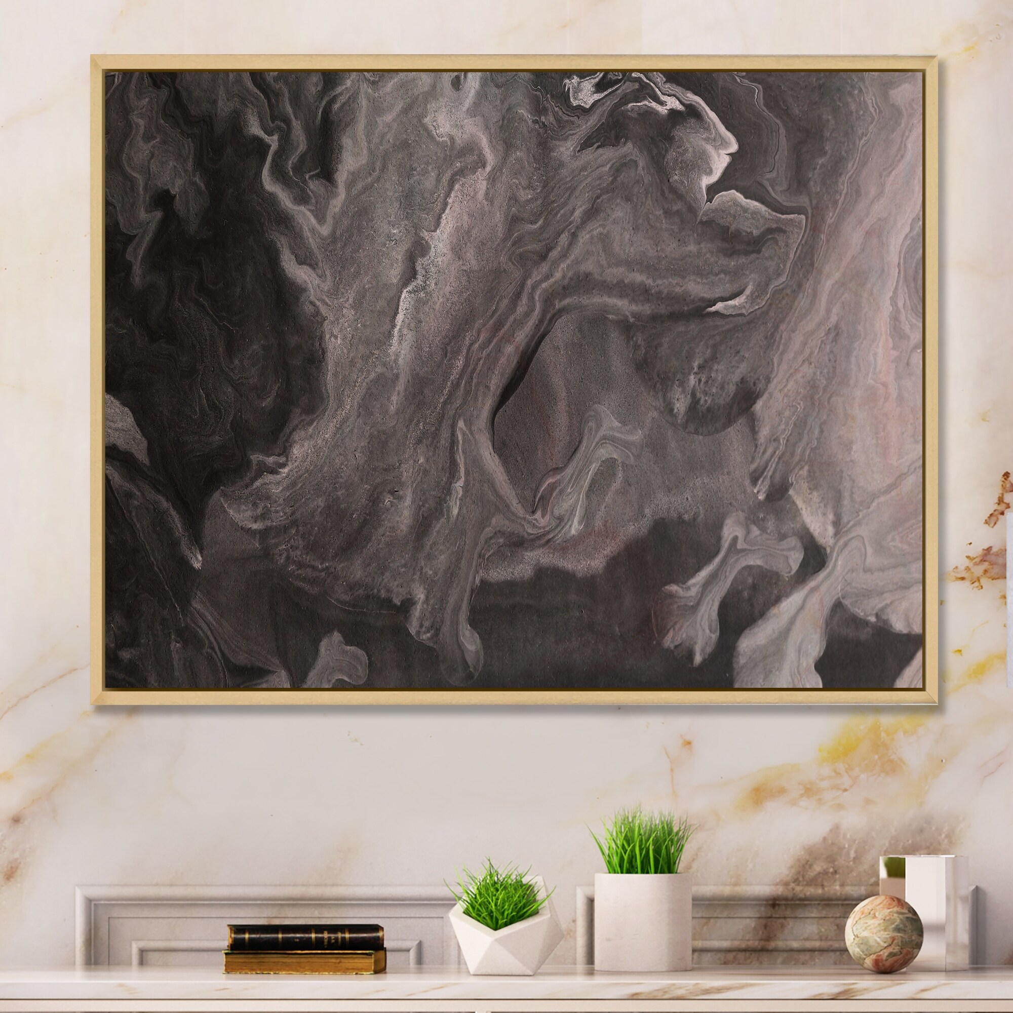 Designart "Liquid Art Waves in Shades of Black III" Modern Framed Canvas Wall Art