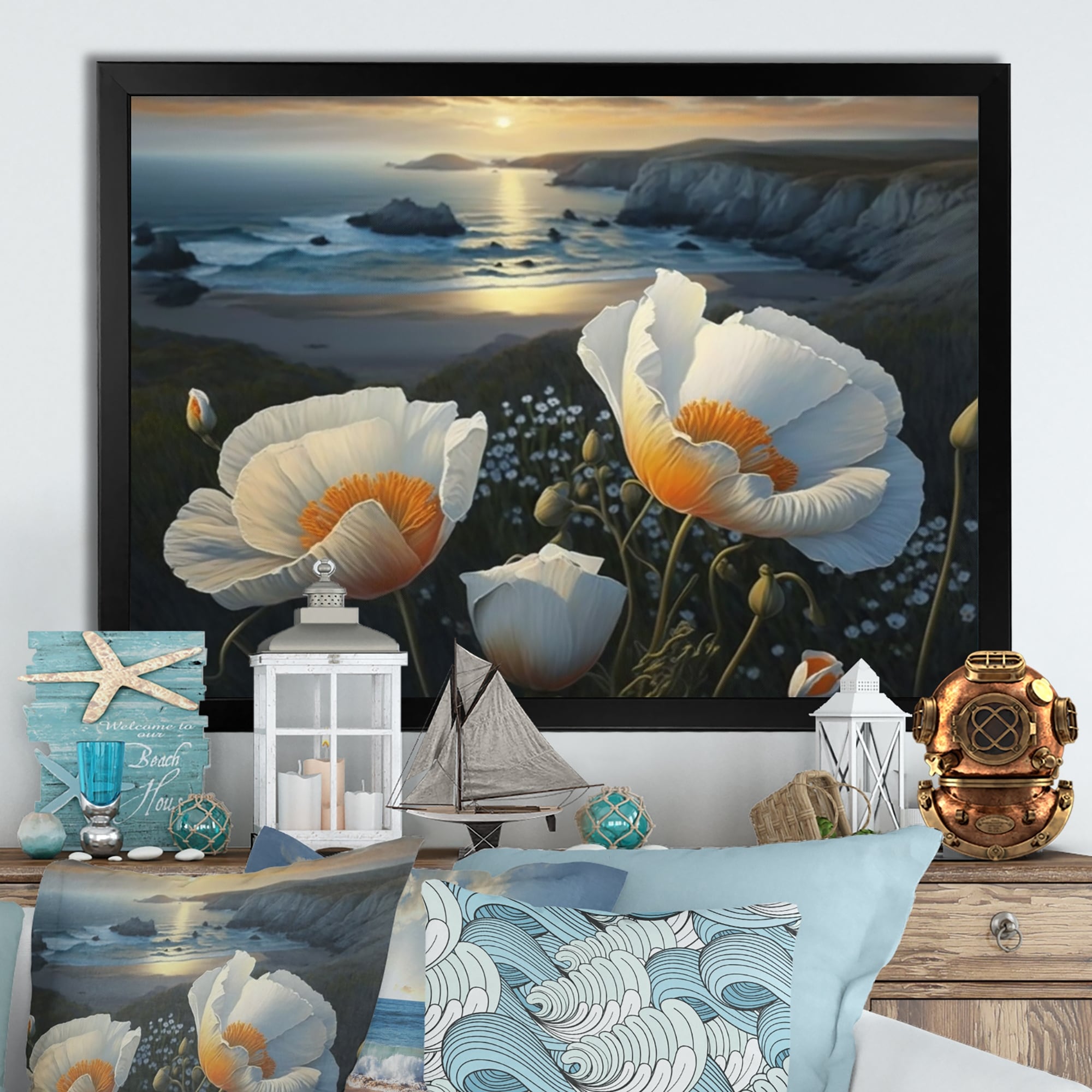 Designart "White Flowers By the Coast III" Beach Framed Art Print