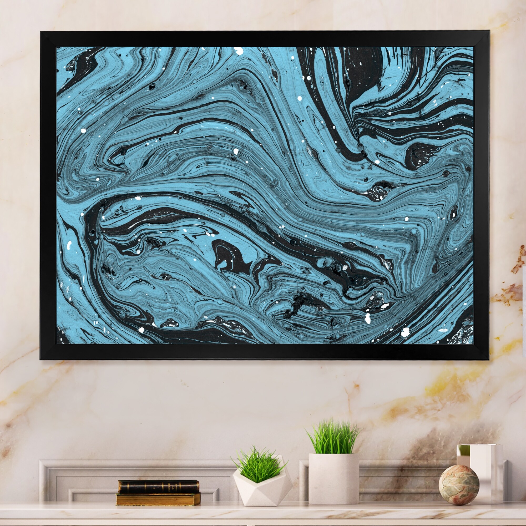 Designart "Blue Marble Paint Splashes" Modern Framed Wall Art