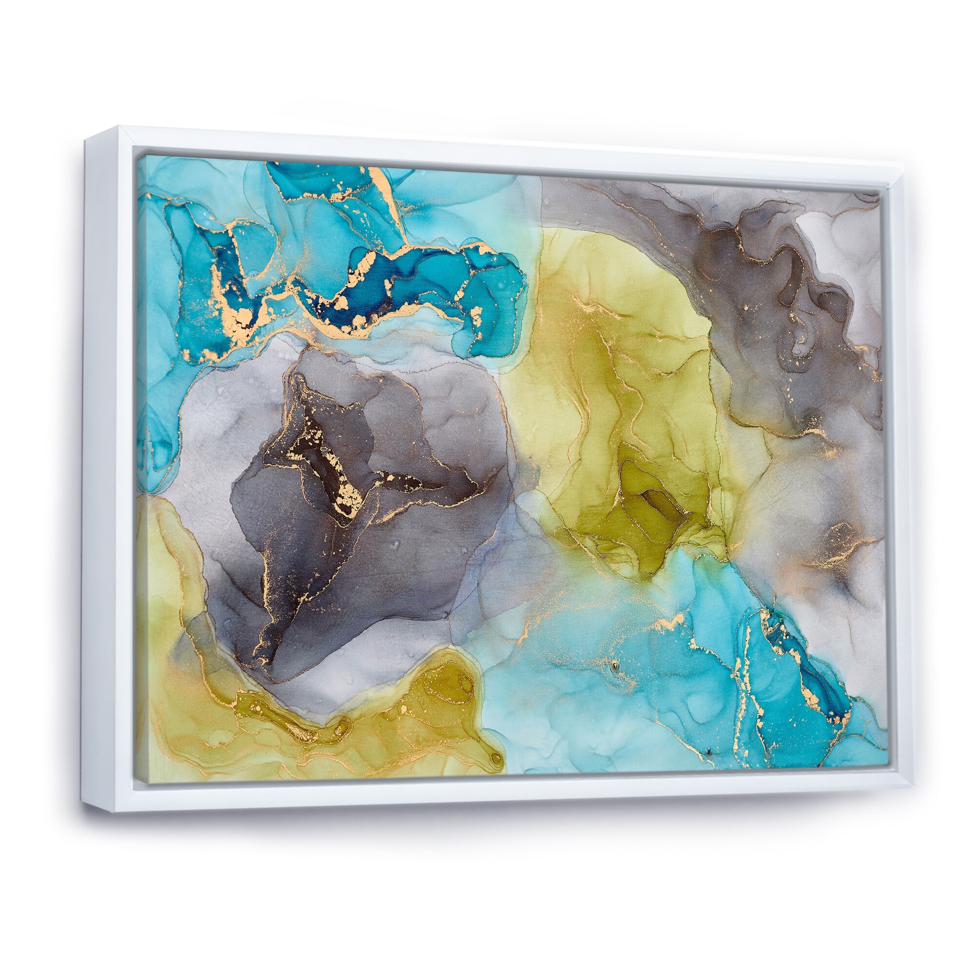 Designart "Blue Luxury Abstract Fluid Art VII" Modern Framed Canvas Wall Art Print