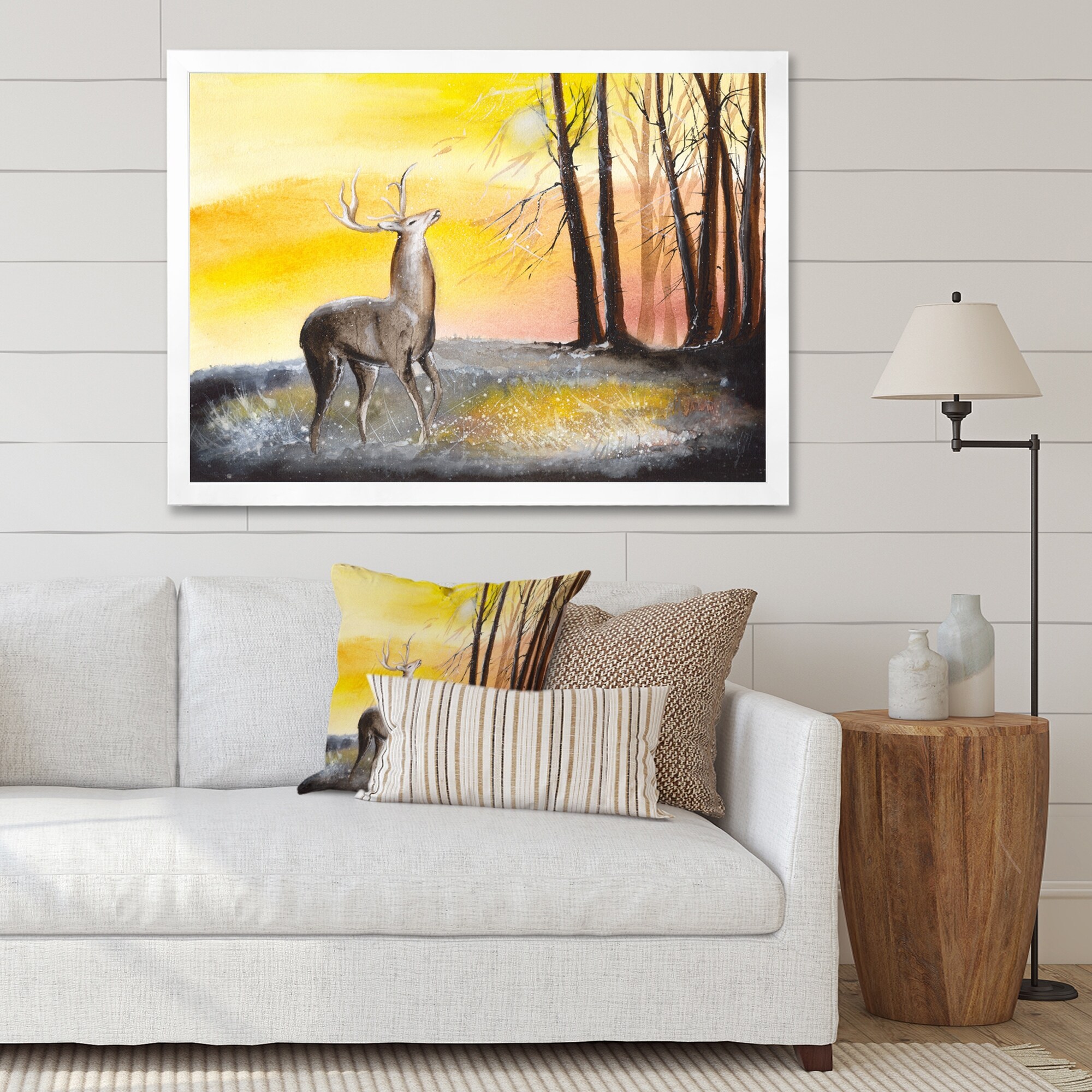 Designart "A Deer in Autumn Forest With Trees" Traditional Framed Art Print