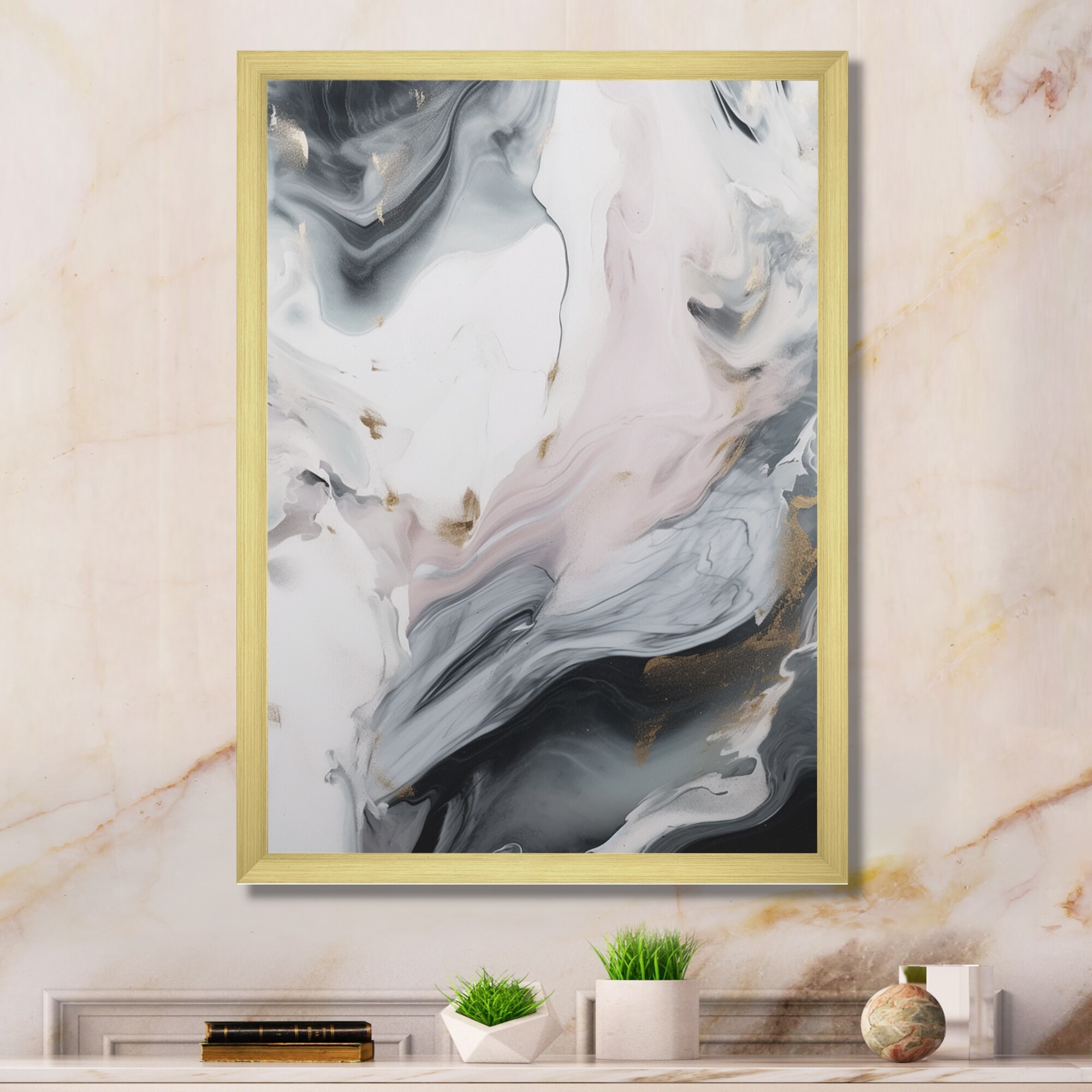 Designart "White And Grey Captivating Marble I" Abstract Marble Framed Canvas Wall Art