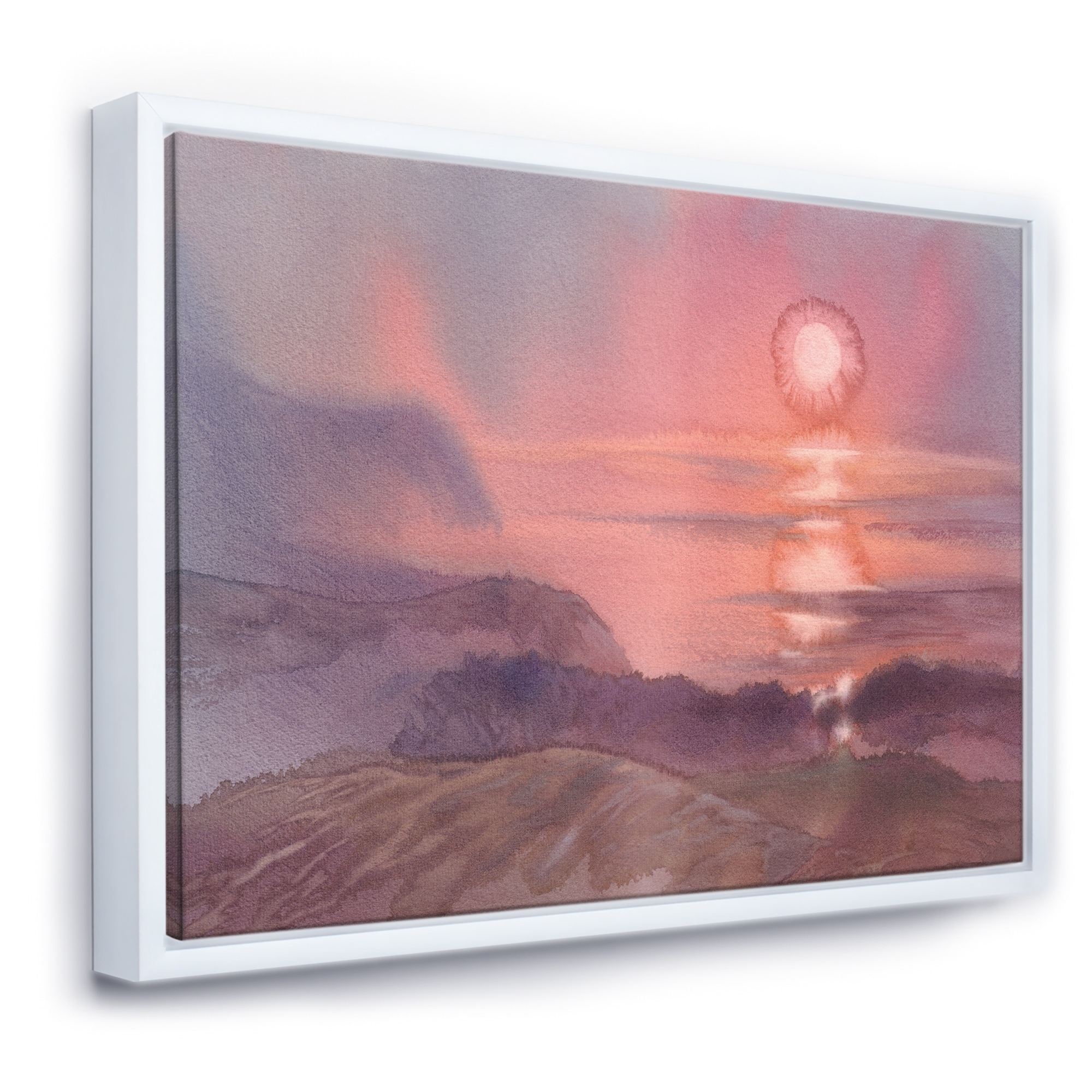 Designart "Sunrise In Pink Watercolor" Farmhouse Framed Canvas Wall Art Print
