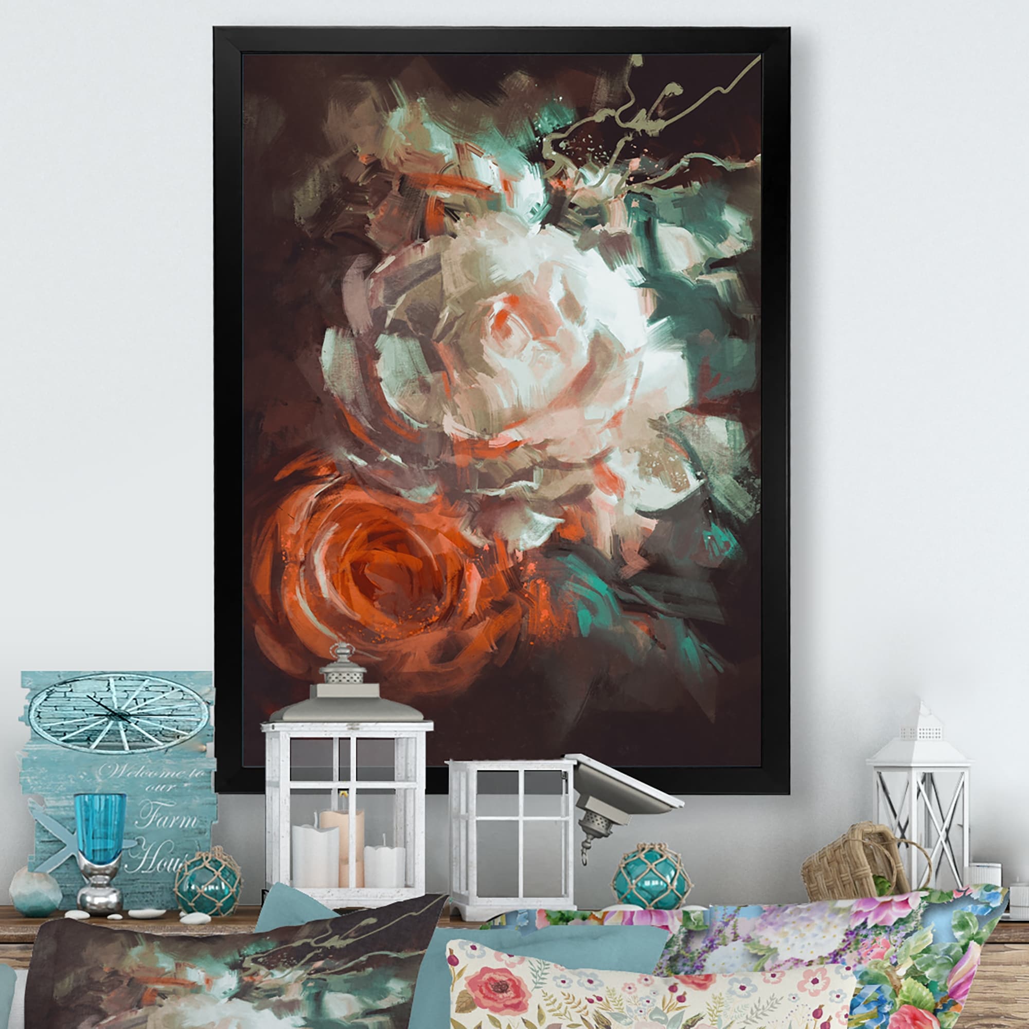 Designart "Grunge White Bouquet of Rose" Farmhouse Framed Art Print
