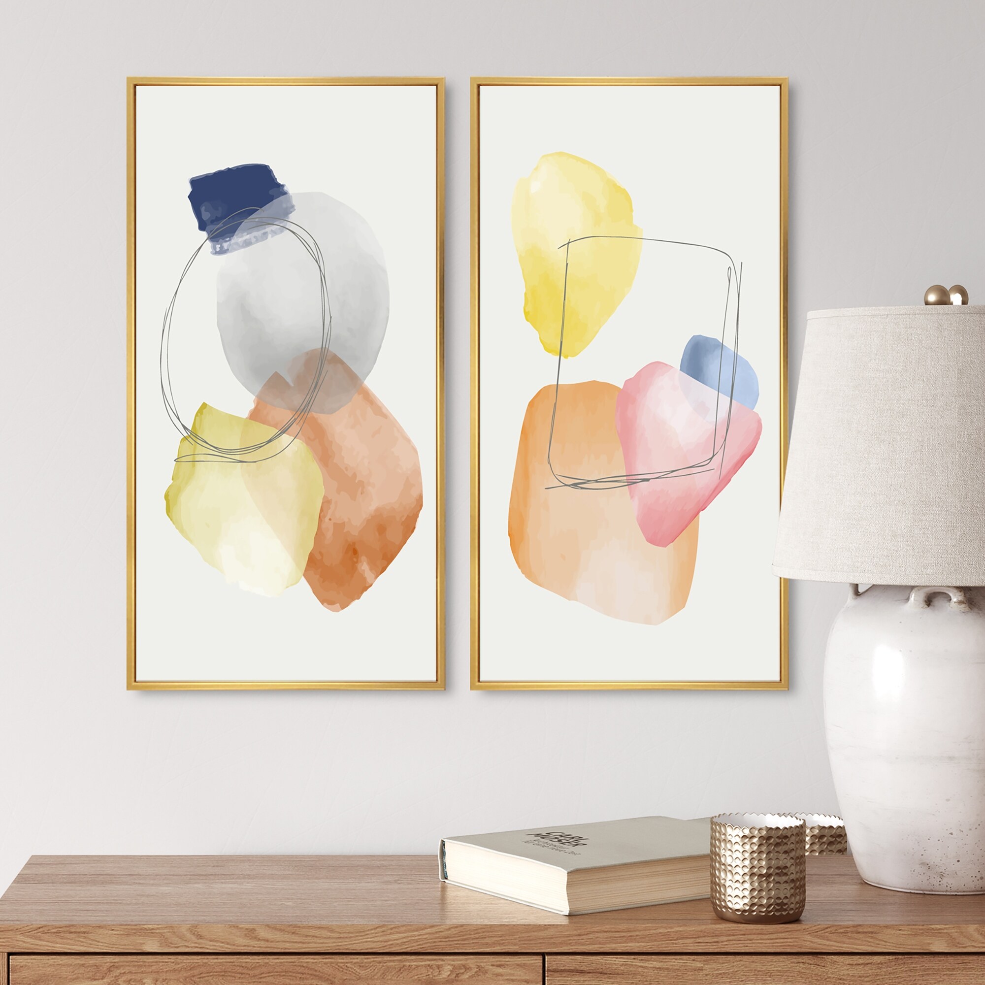 Designart "Minimalistic Creative Designs in Retro Colors XII" Abstract Framed Art Set of 2 Pieces