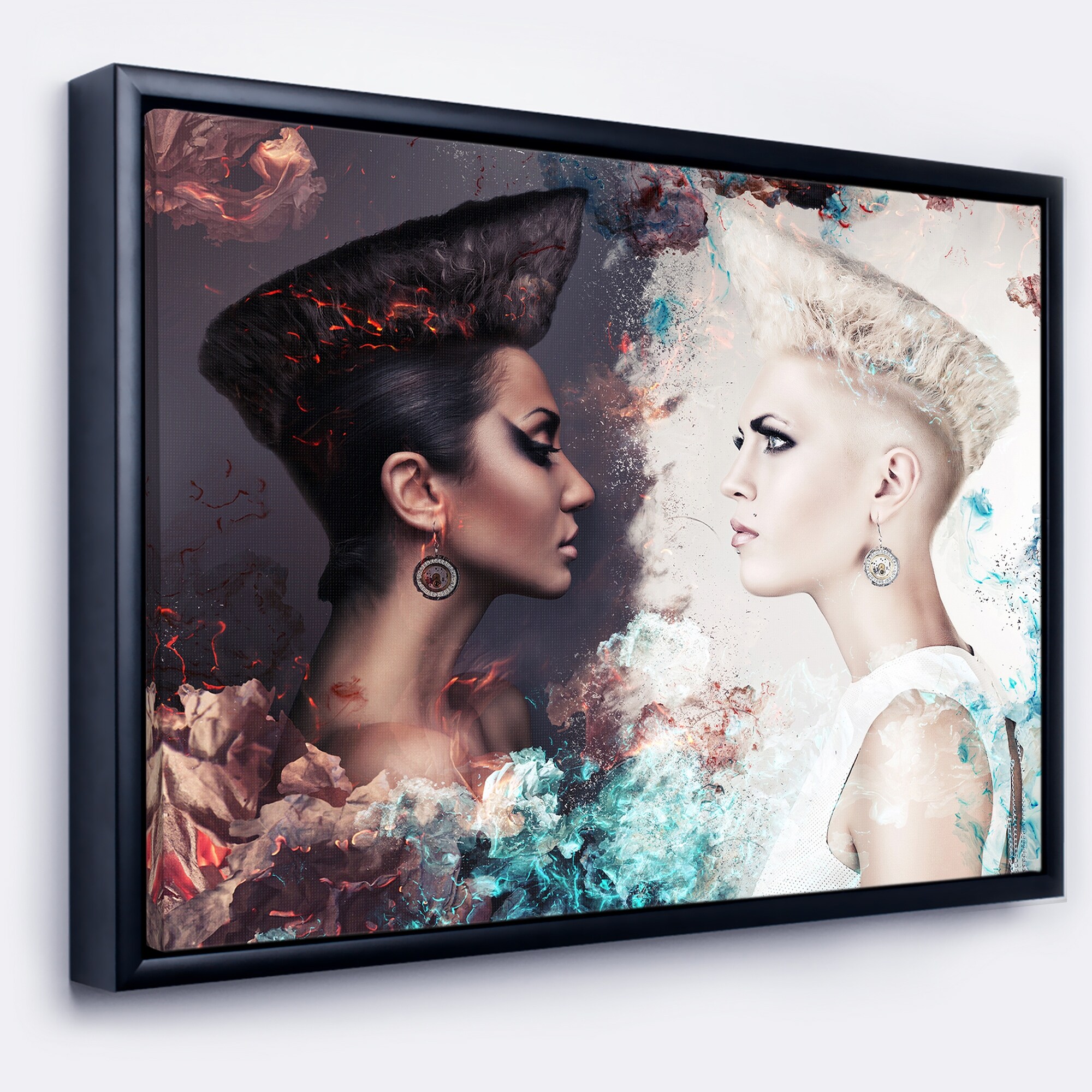 Designart "Evil and Good Women Face to Face" Portrait Framed Canvas Art Print