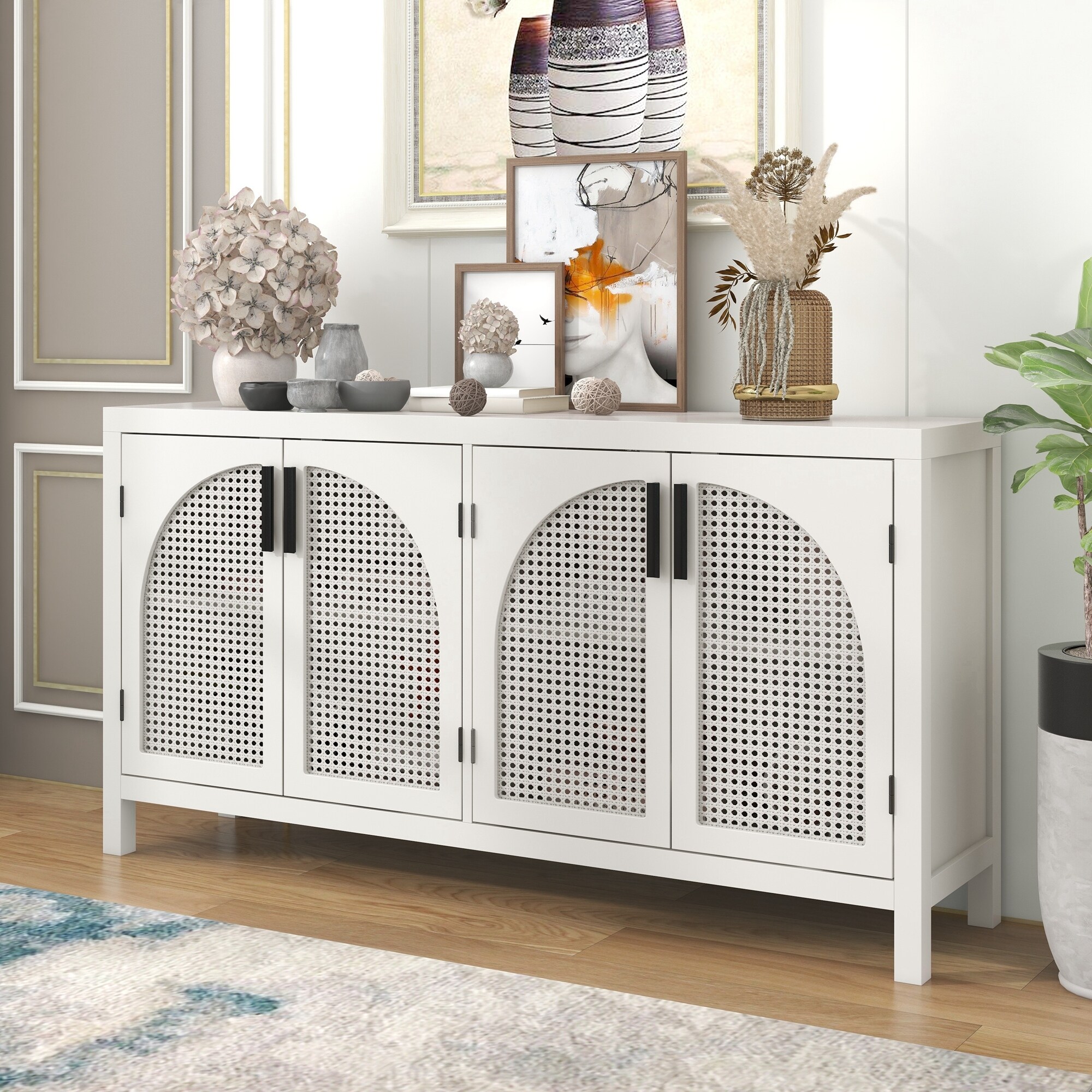 Large Storage Space Sideboard with Artificial Rattan Door and Metal Handles