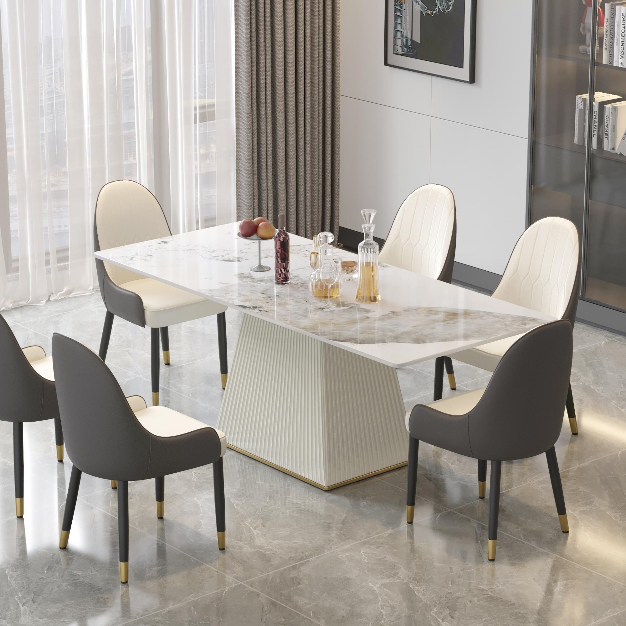 5-Piece Artificial Marble Countertop Dining Table Kitchen Table Set with 4 PU Leather-Upholstered Chairs