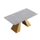 63" Artificial Stone Gray Straight Edge Golden Metal Leg Dining Table