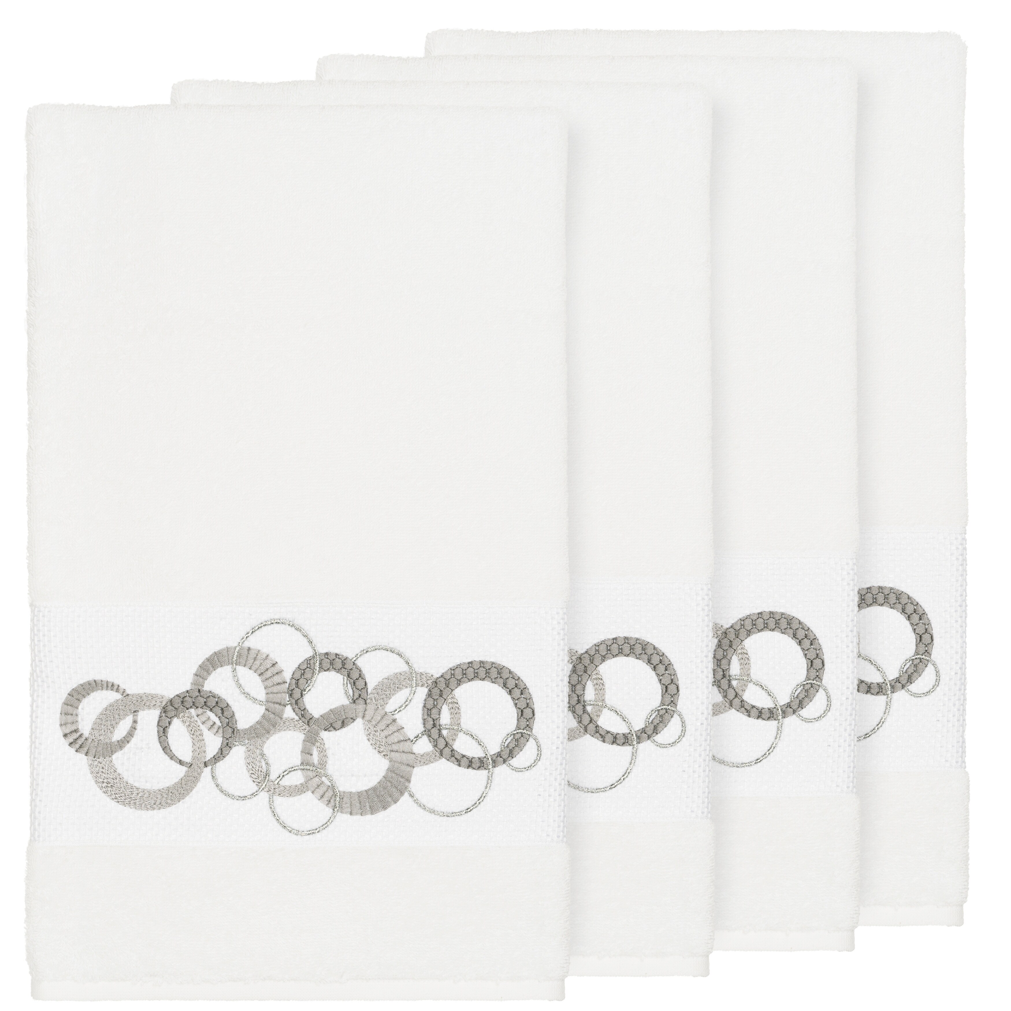 Authentic Hotel and Spa Turkish Cotton Circles Embroidered White 4-piece Bath Towel Set