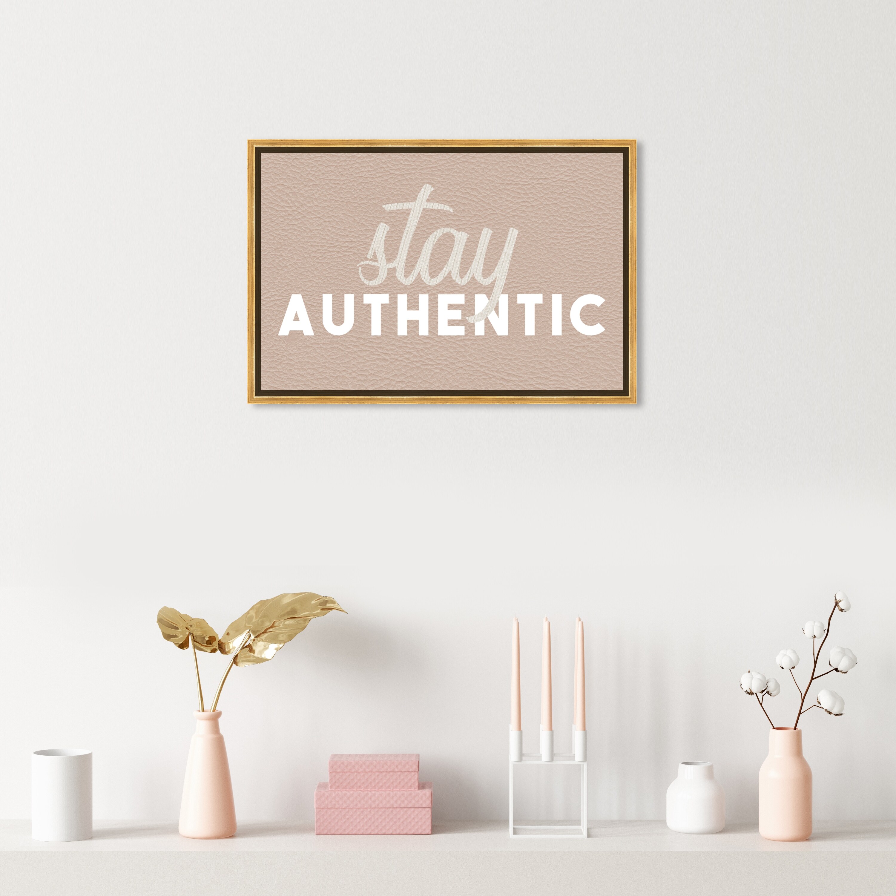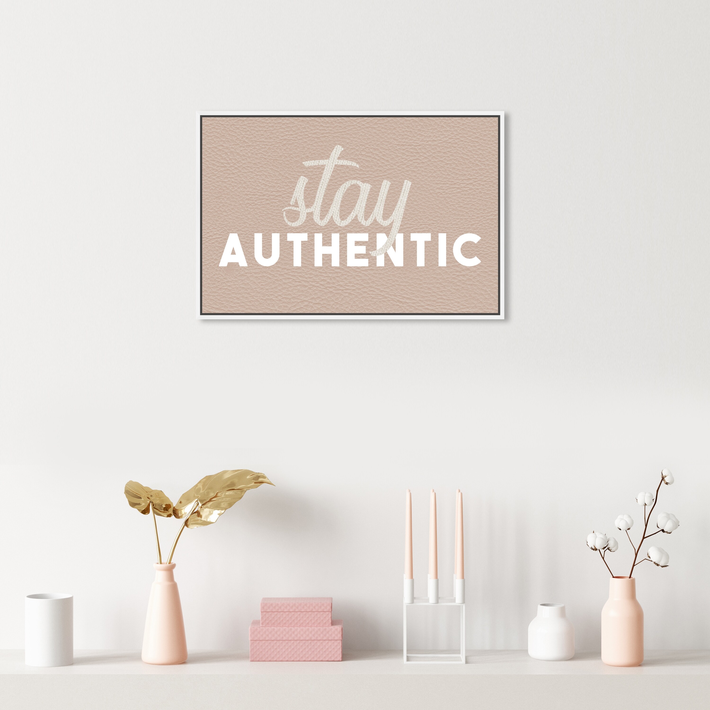 Oliver Gal 'Stay Authentic' Typography and Quotes Wall Art Framed Canvas Print Inspirational Quotes and Sayings - Brown, White