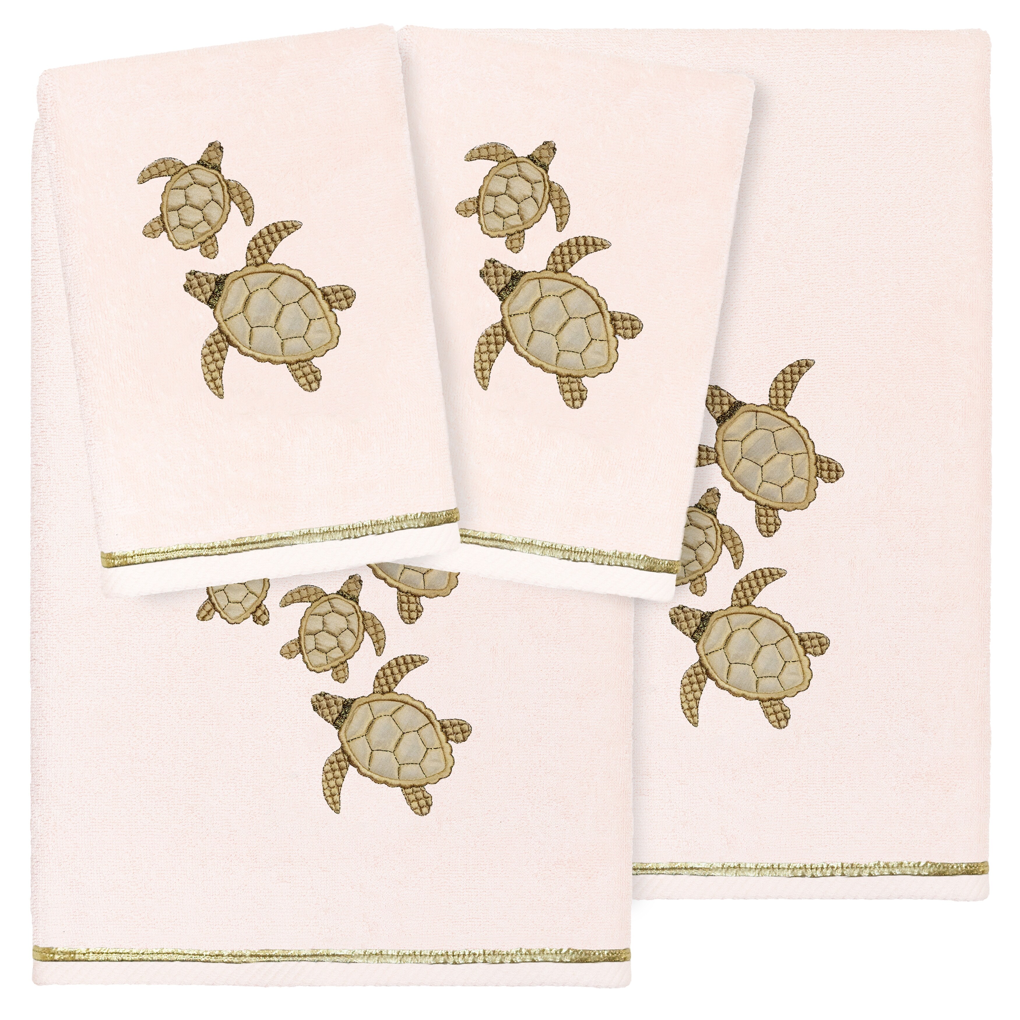Authentic Hotel and Spa Turkish Cotton Turtles Embroidered Teal Blue 4-piece Towel Set