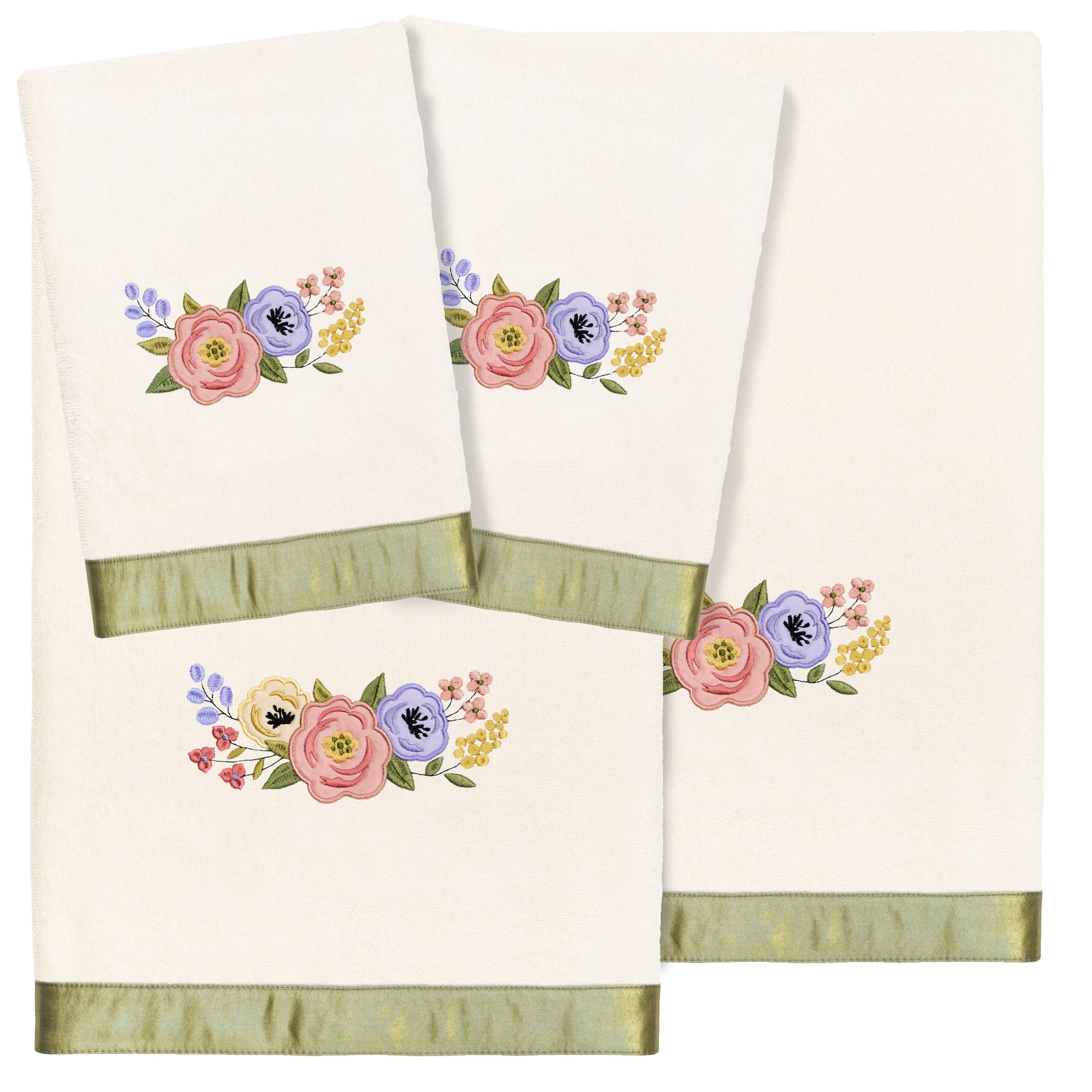 Authentic Hotel and Spa Rose Turkish Cotton Wildflowers Embroidered 3 piece Towel Set