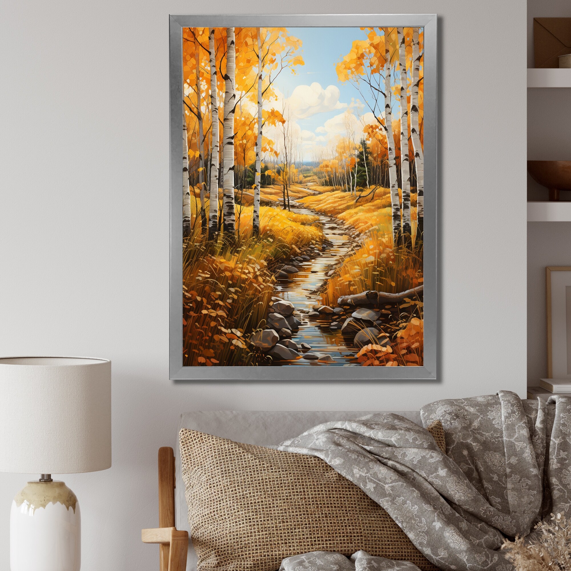 Designart "Birch Woods Autumn Sonata V" Tree Birch Framed Canvas Prints