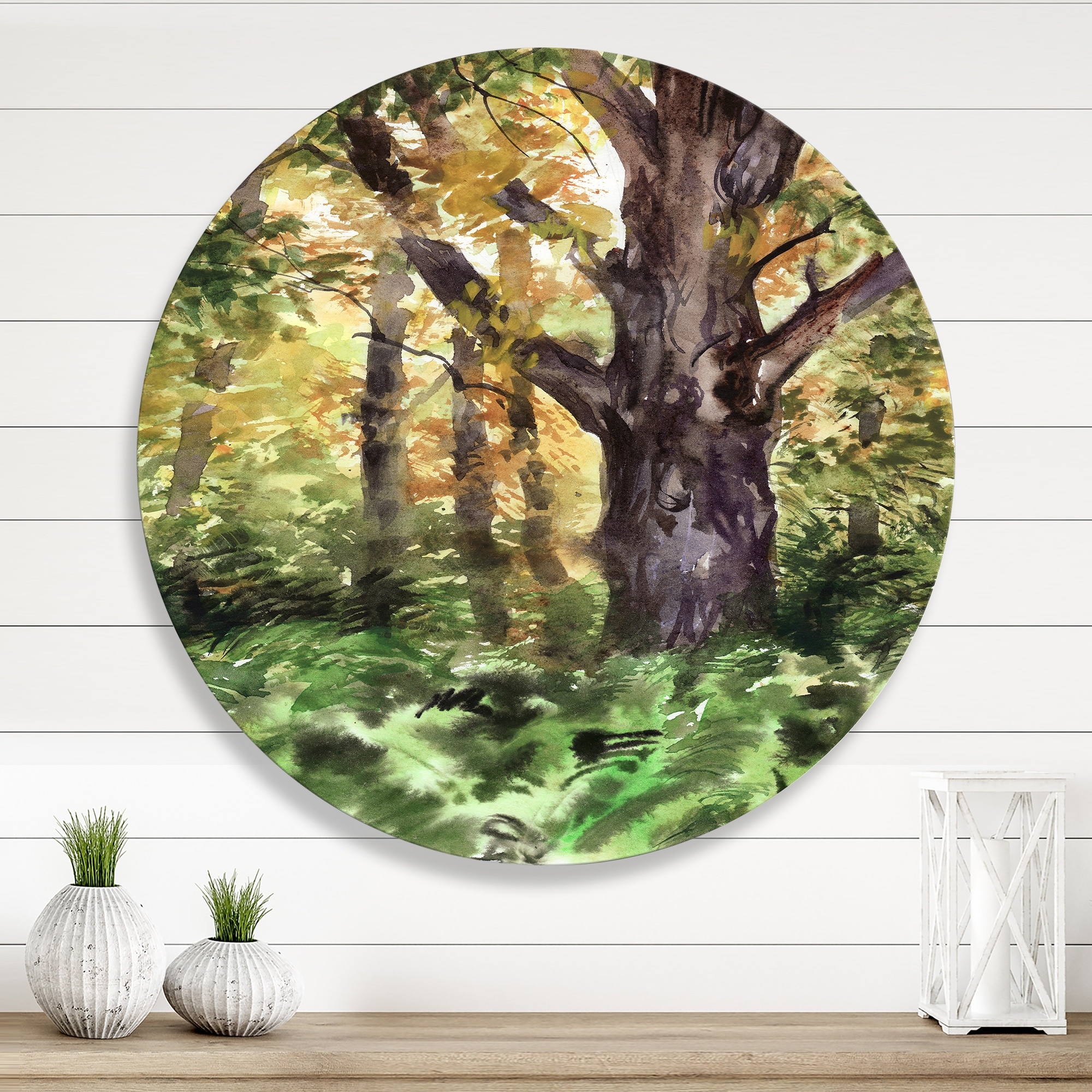 Designart 'Large Tree in Autumn Forest' Lake House Metal Circle Wall Art