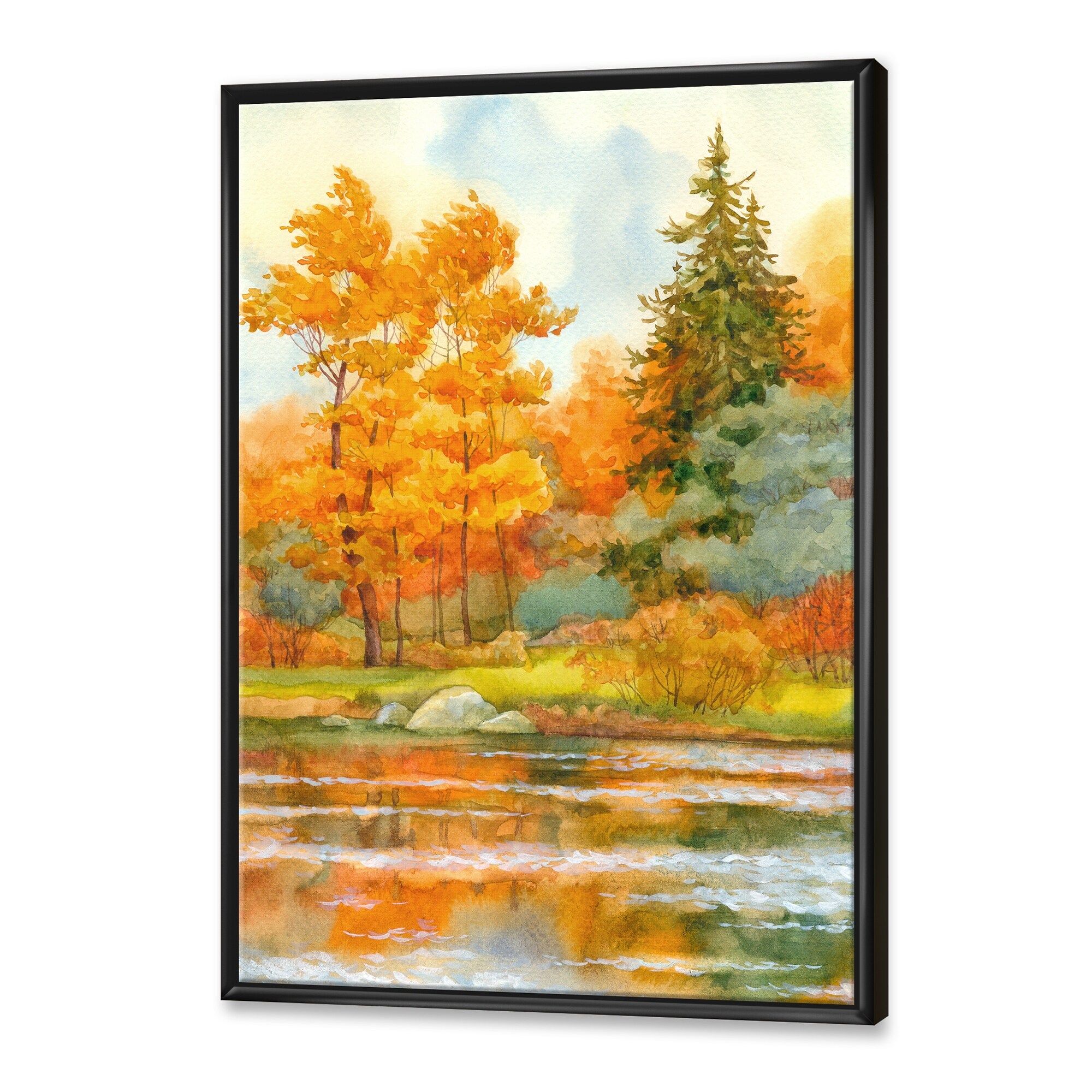 Designart "Autumnal Forest By the Lake Side IV" Lake House Framed Canvas Wall Art Print