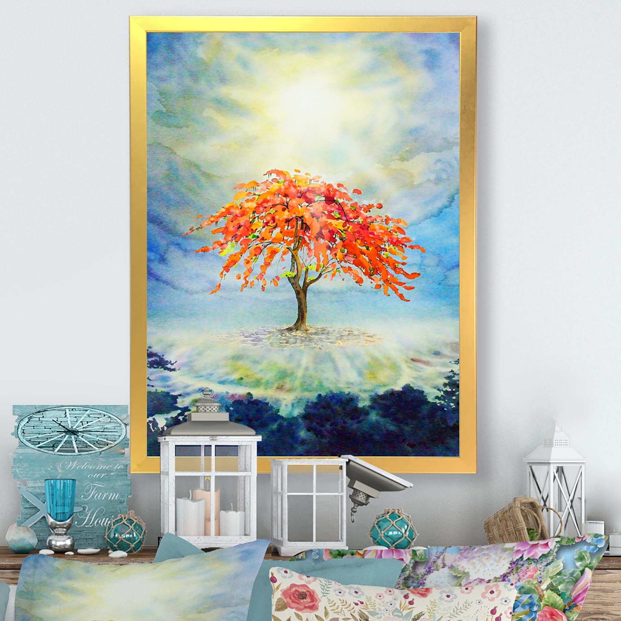 Designart "Colorfull Blooming Red Orange Autumn Tree II" Traditional Framed artwork