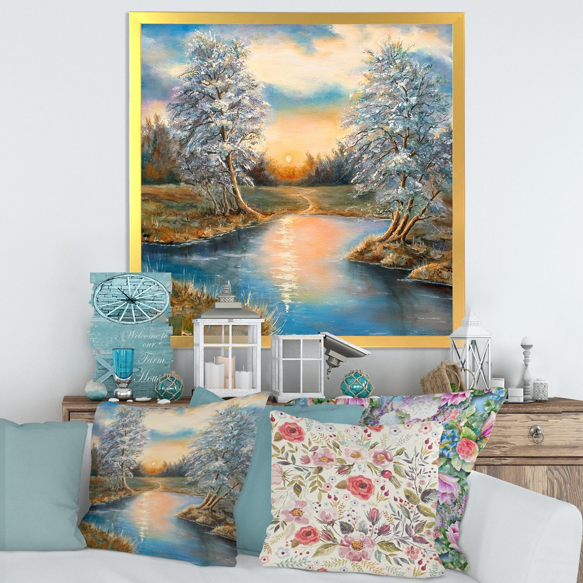 Designart "Autumn Landscape By the River" Traditional Framed Art Print