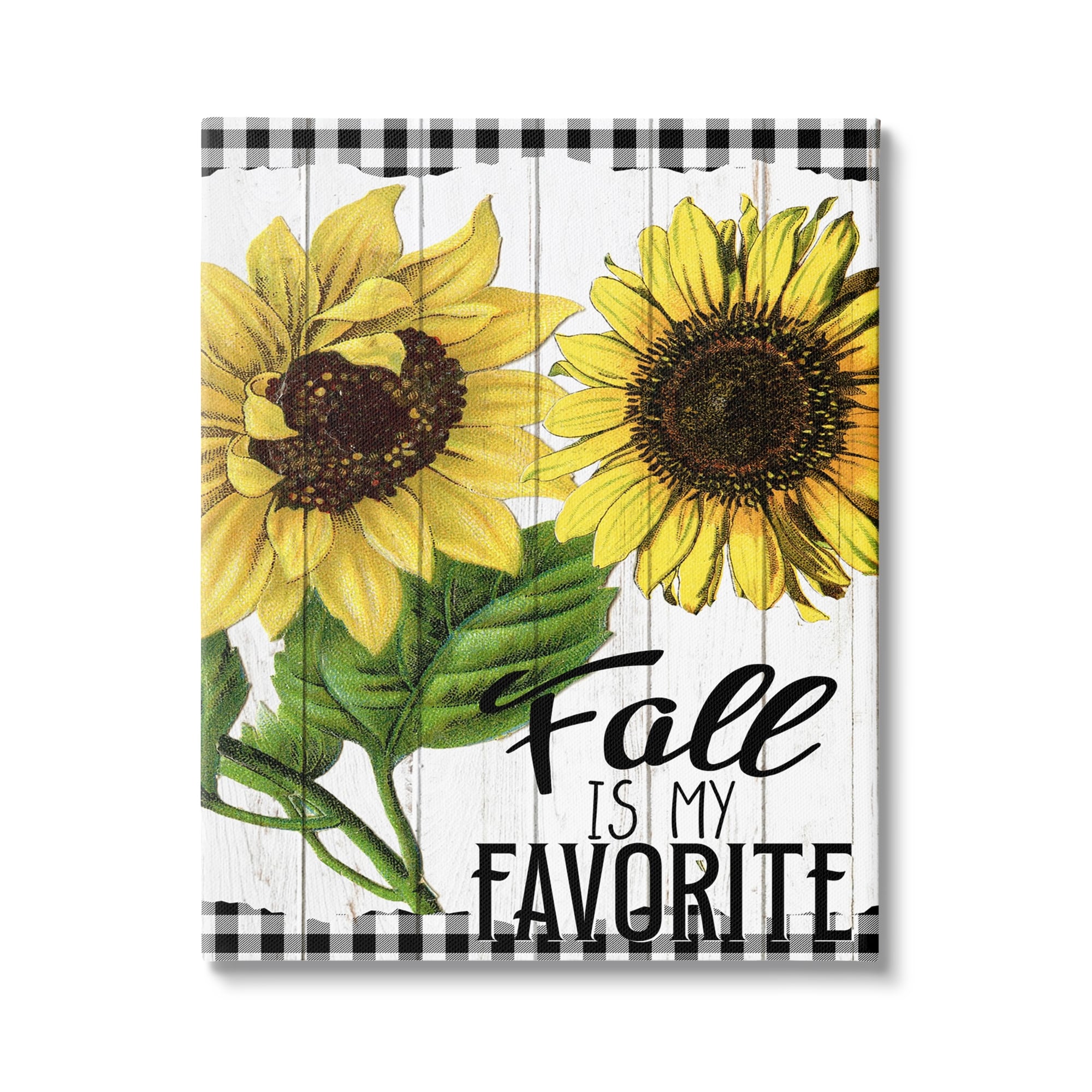 Stupell Fall Autumn Quote Sunflower Tartan Pattern Rustic Design Canvas Wall Art
