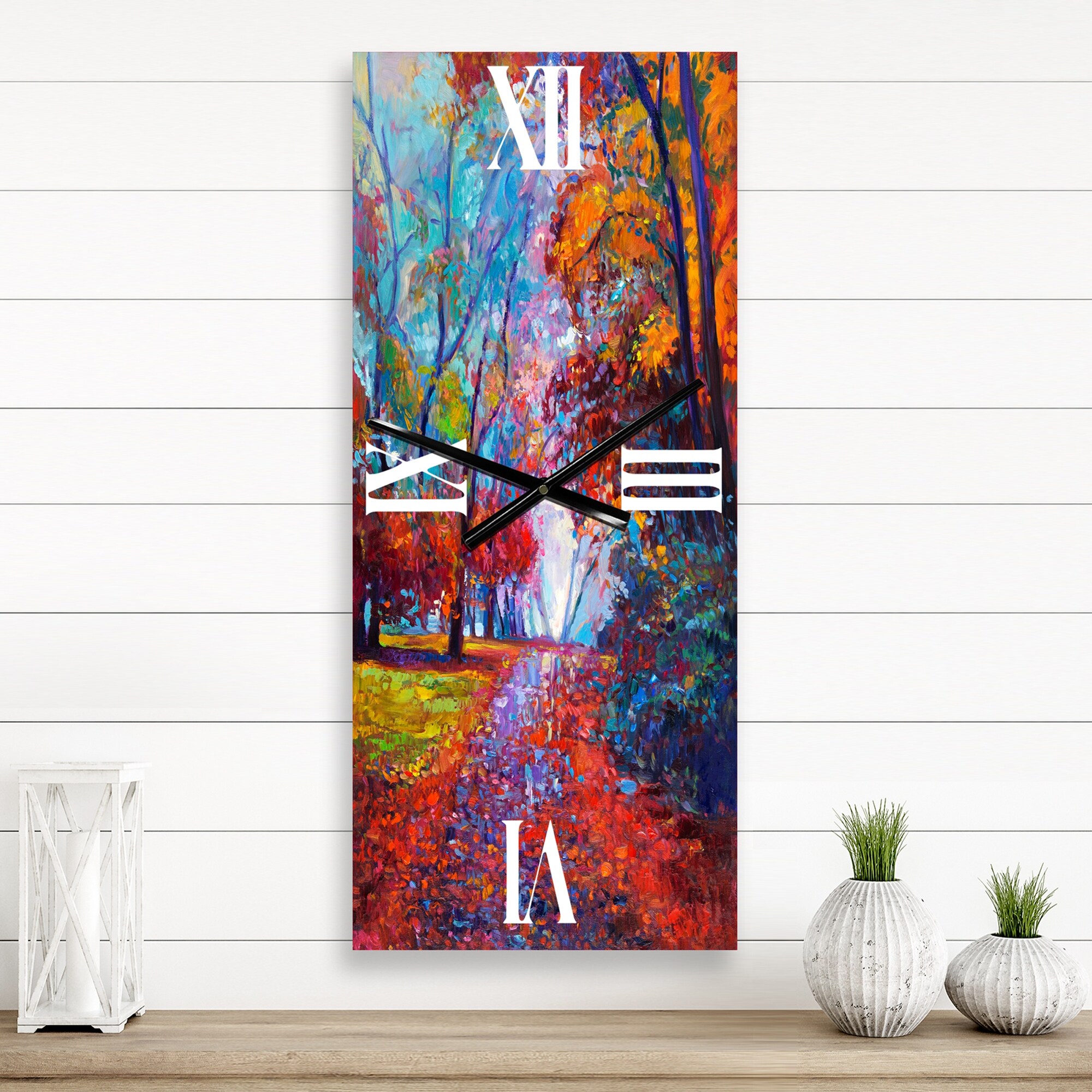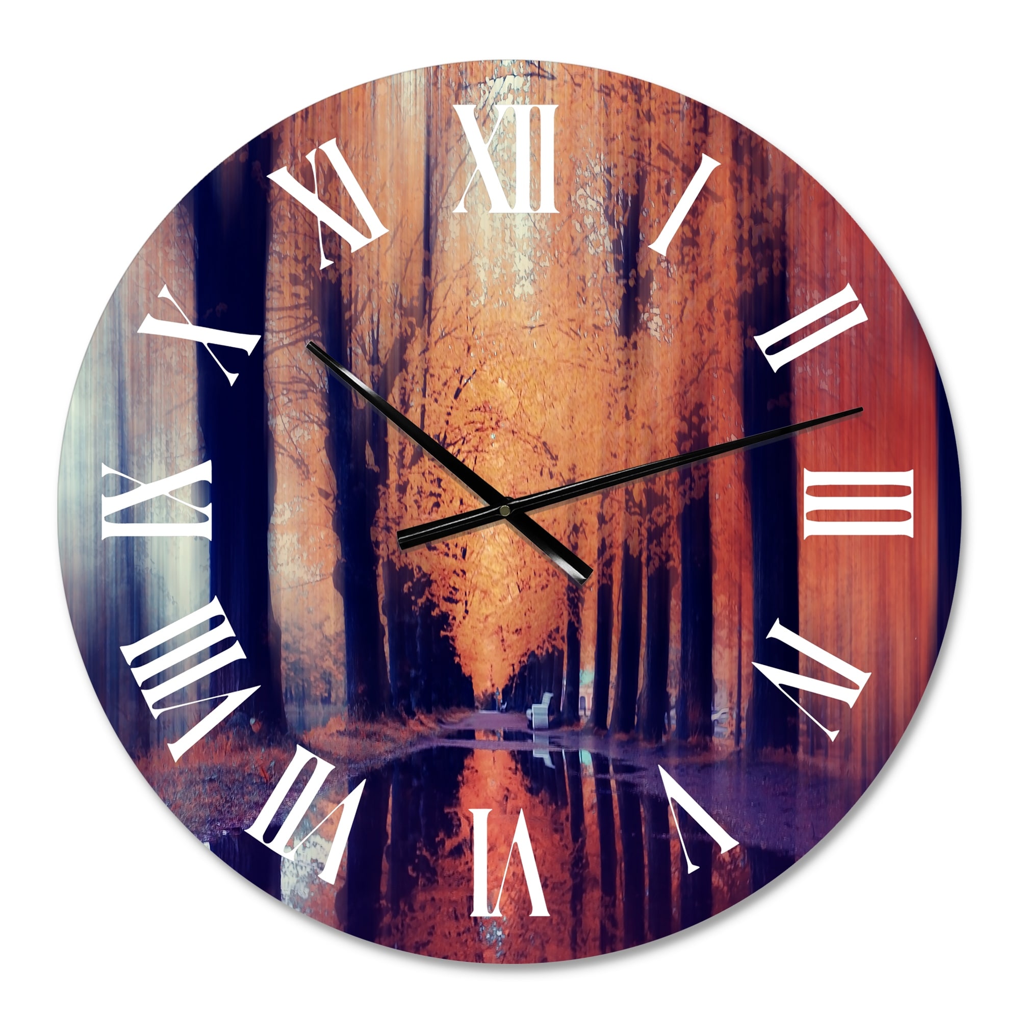 Designart ' Autumn Colored Forest Treescape II' Traditional wall clock