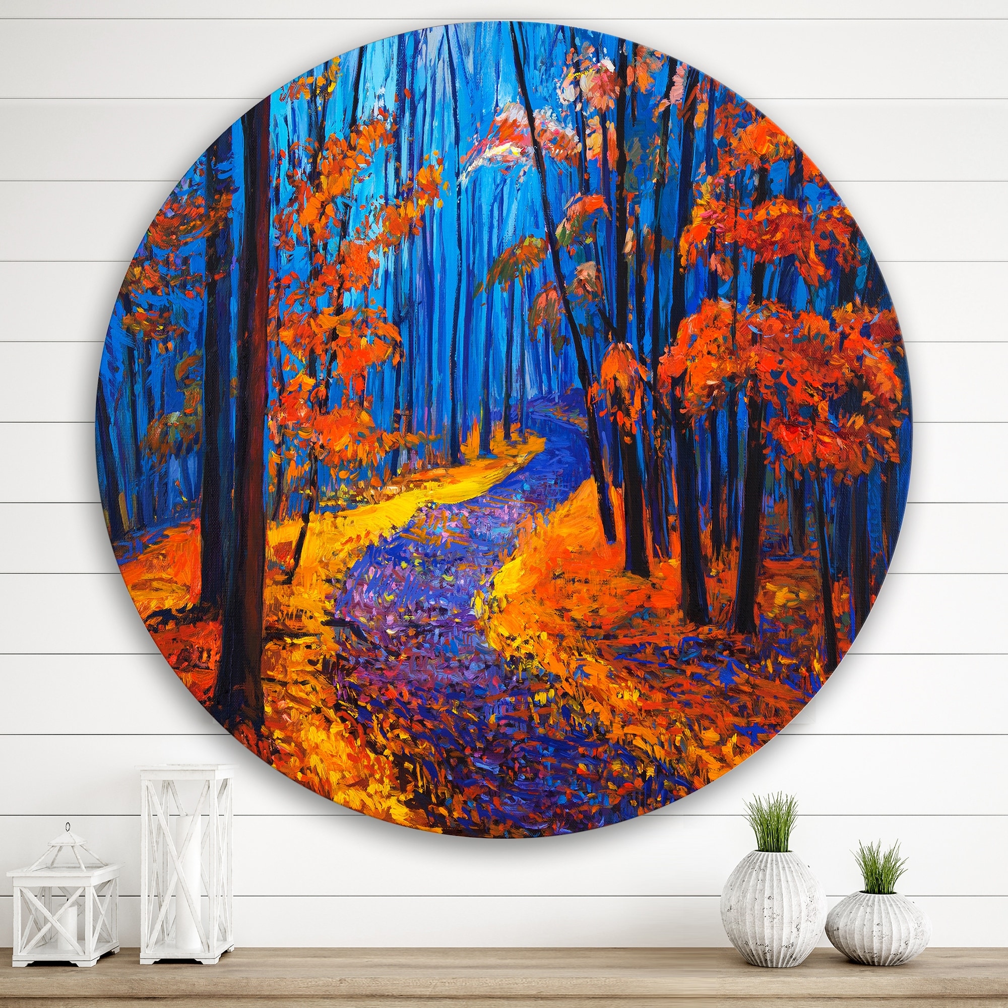 Designart 'Little Road Through Orange Autumn Landscape I' Traditional Metal Circle Wall Art
