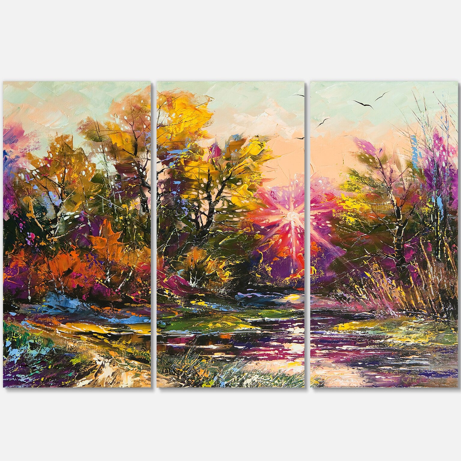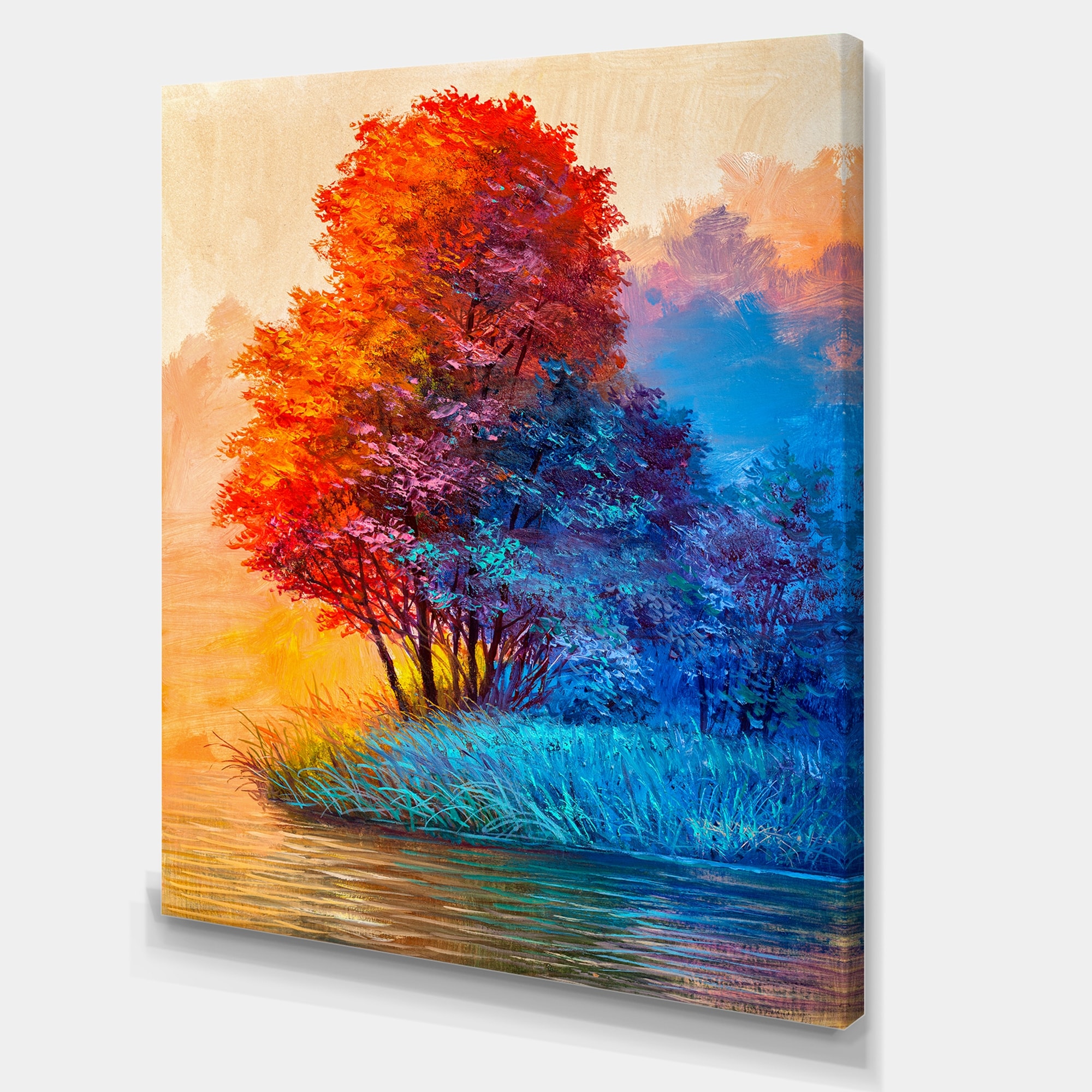 Designart "Autumn Colored Forest Treescape VI" Farmhouse Canvas Wall Art Print