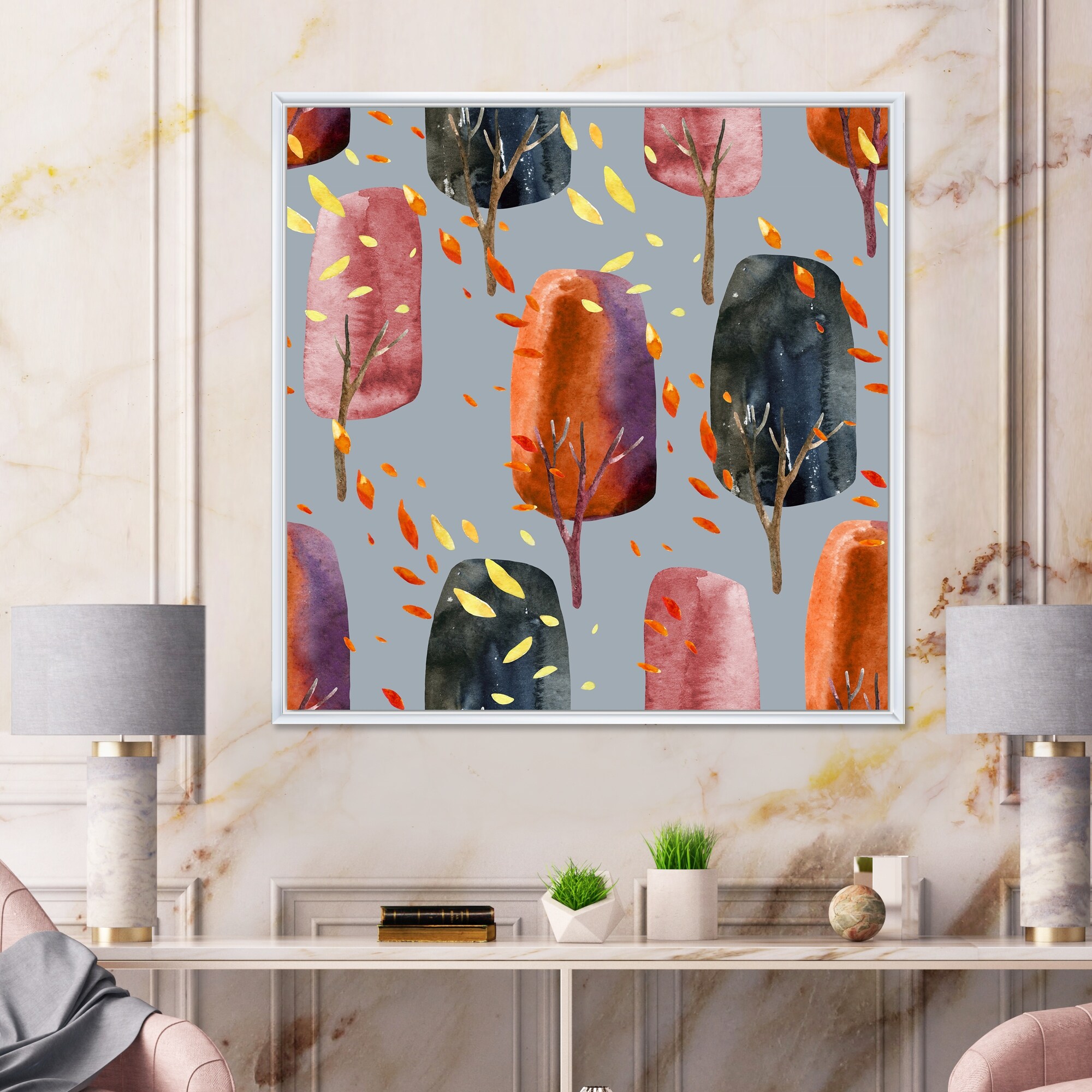 Designart "Retro Autumn Trees With Falling Leaves II" Patterned Framed Canvas Wall Art Print