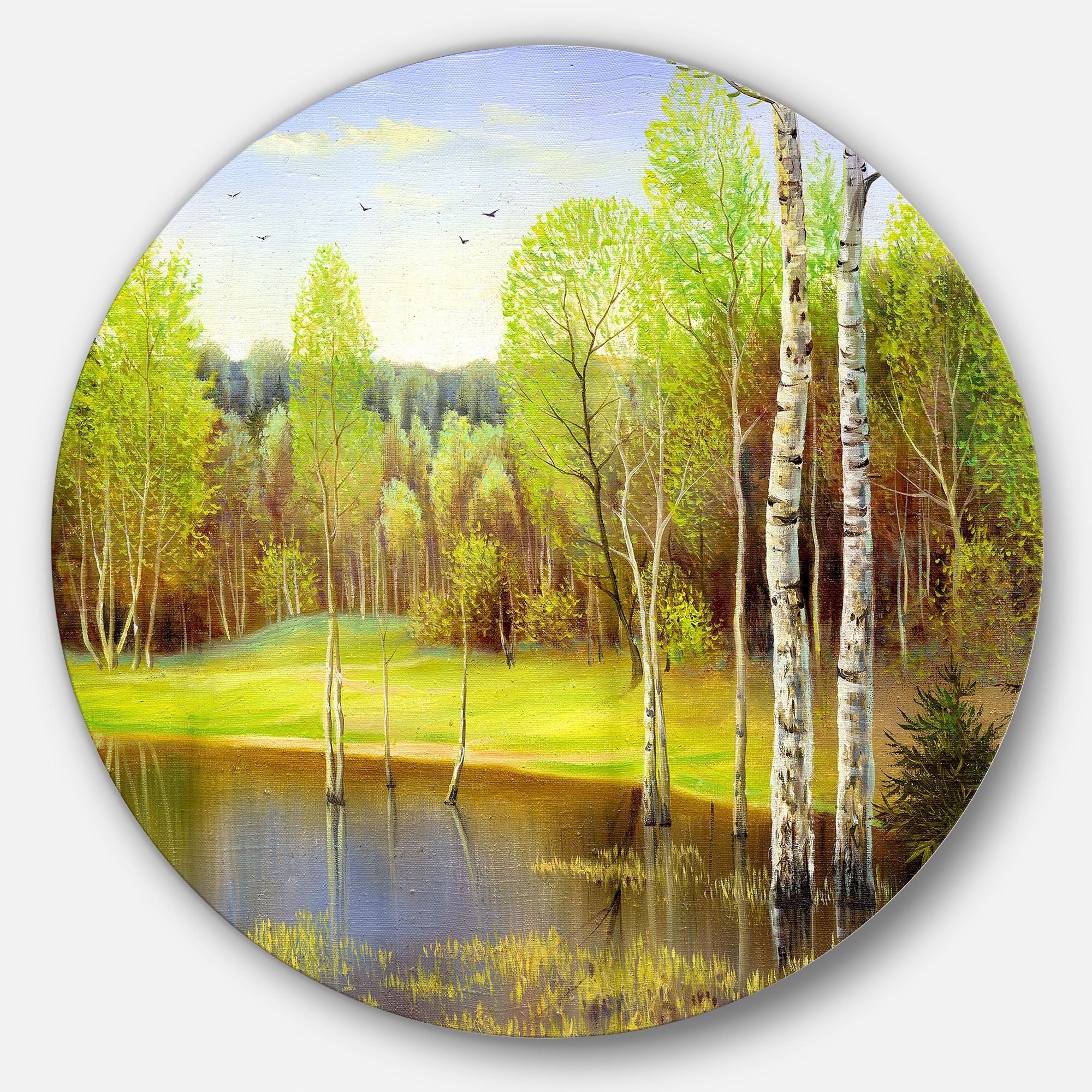 Designart 'Light Green Autumn' Landscape Glossy Large Disk Metal Wall Art