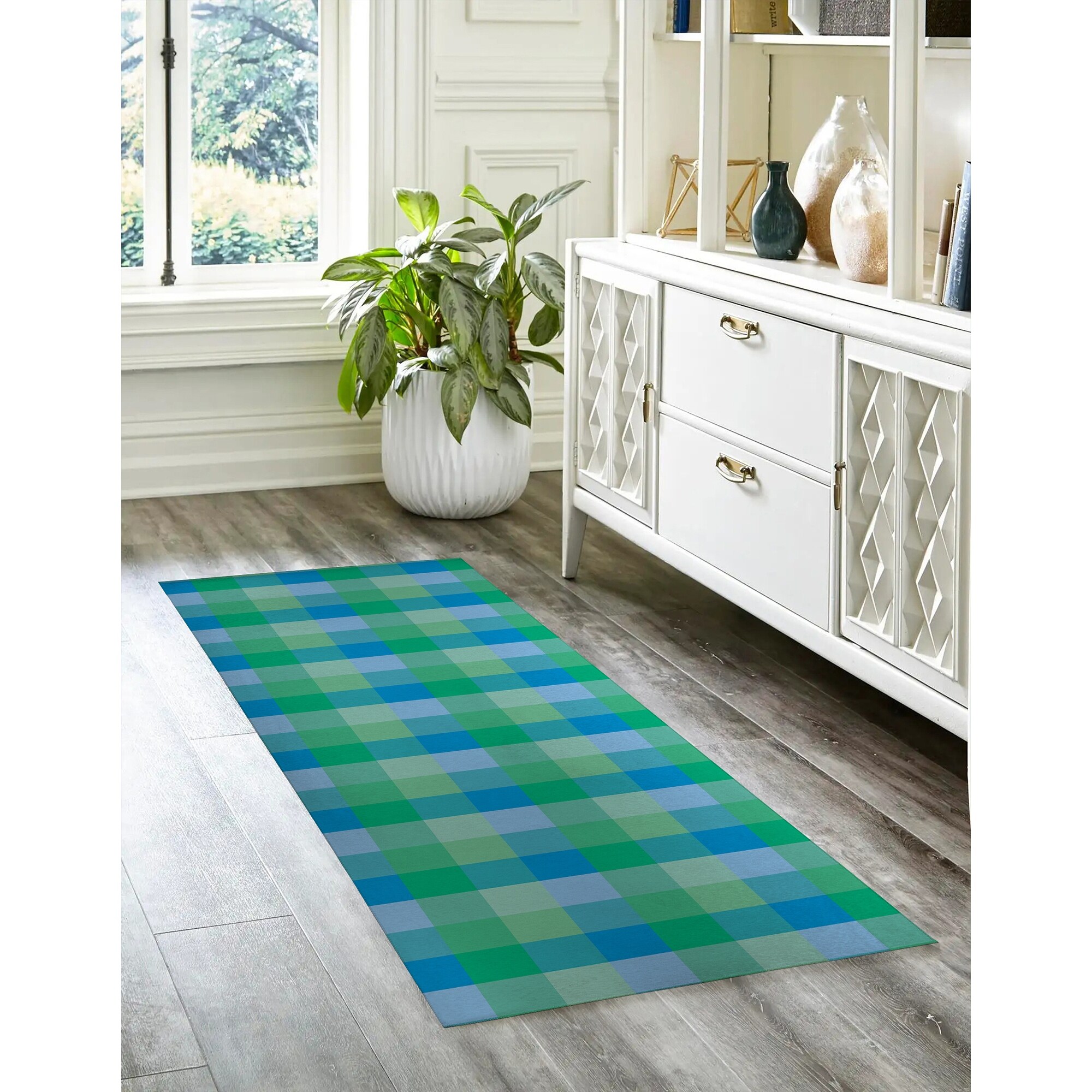 SIMPLE GINGHAM & PLAID GREEN Outdoor Rug By Becky Bailey