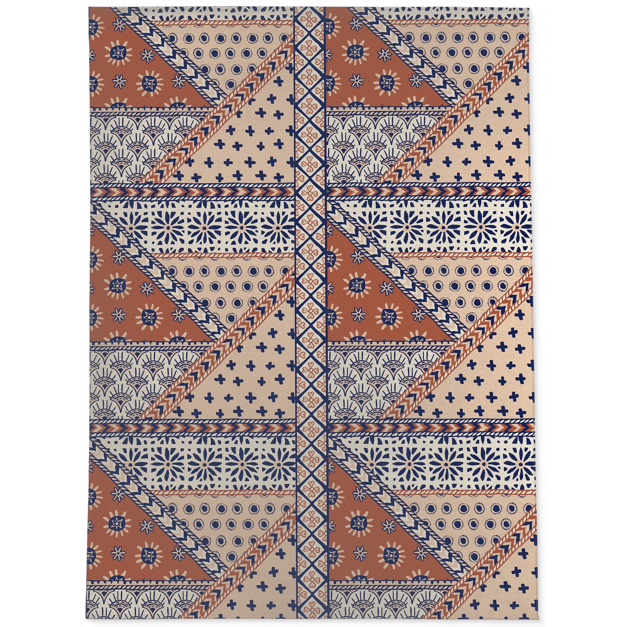 STRIPE TRIANGLE BLOCK PRINT BLUE Outdoor Rug By Becky Bailey