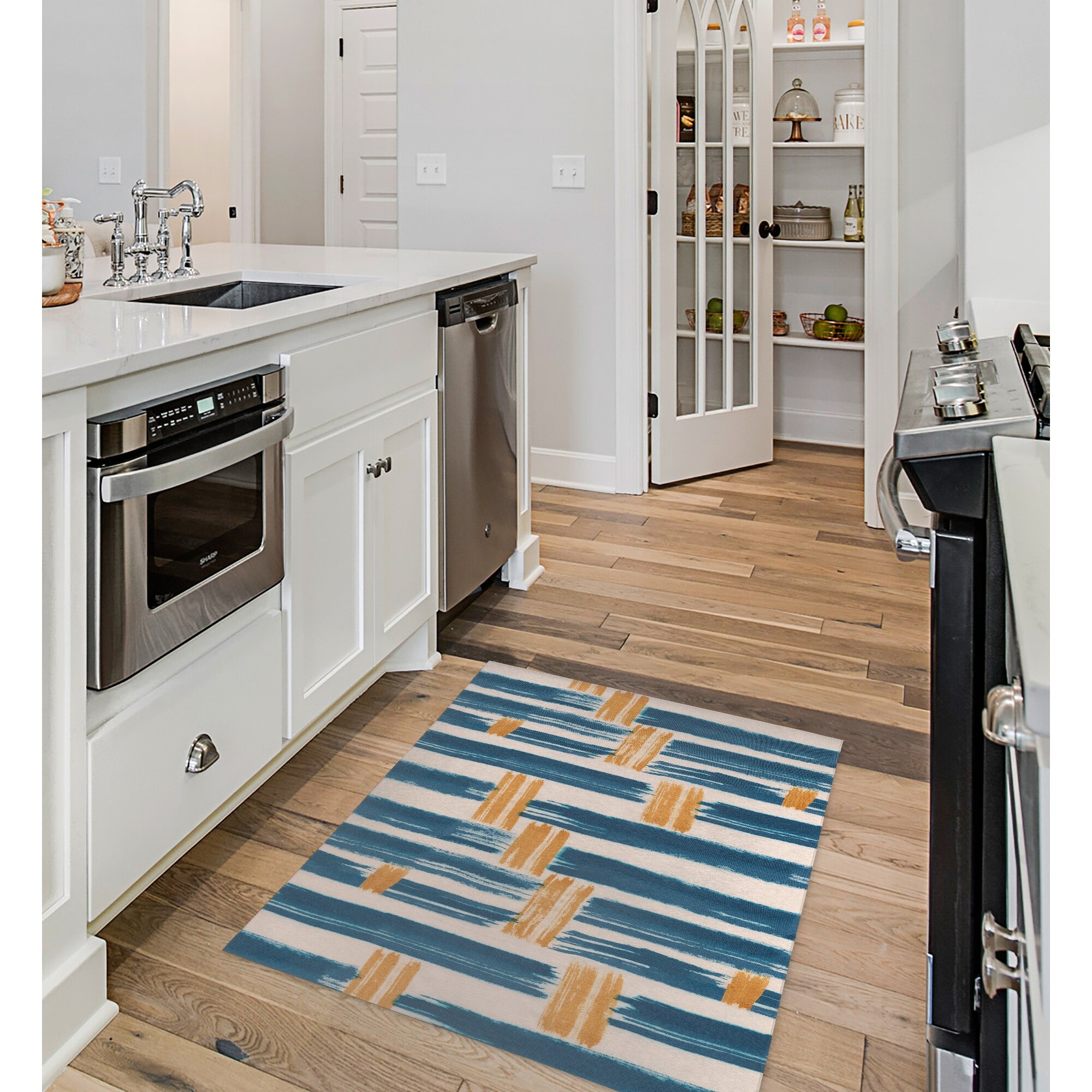 BRUSH WEAVE NAVY Kitchen Mat By Becky Bailey