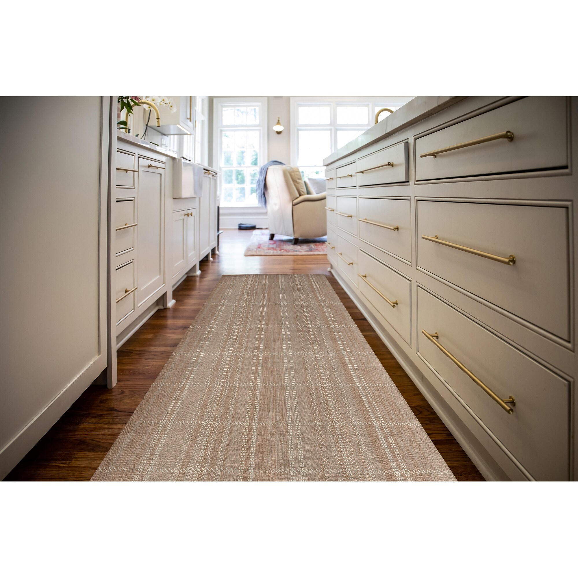 WOVEN STRIPE BEIGE Kitchen Mat By Becky Bailey