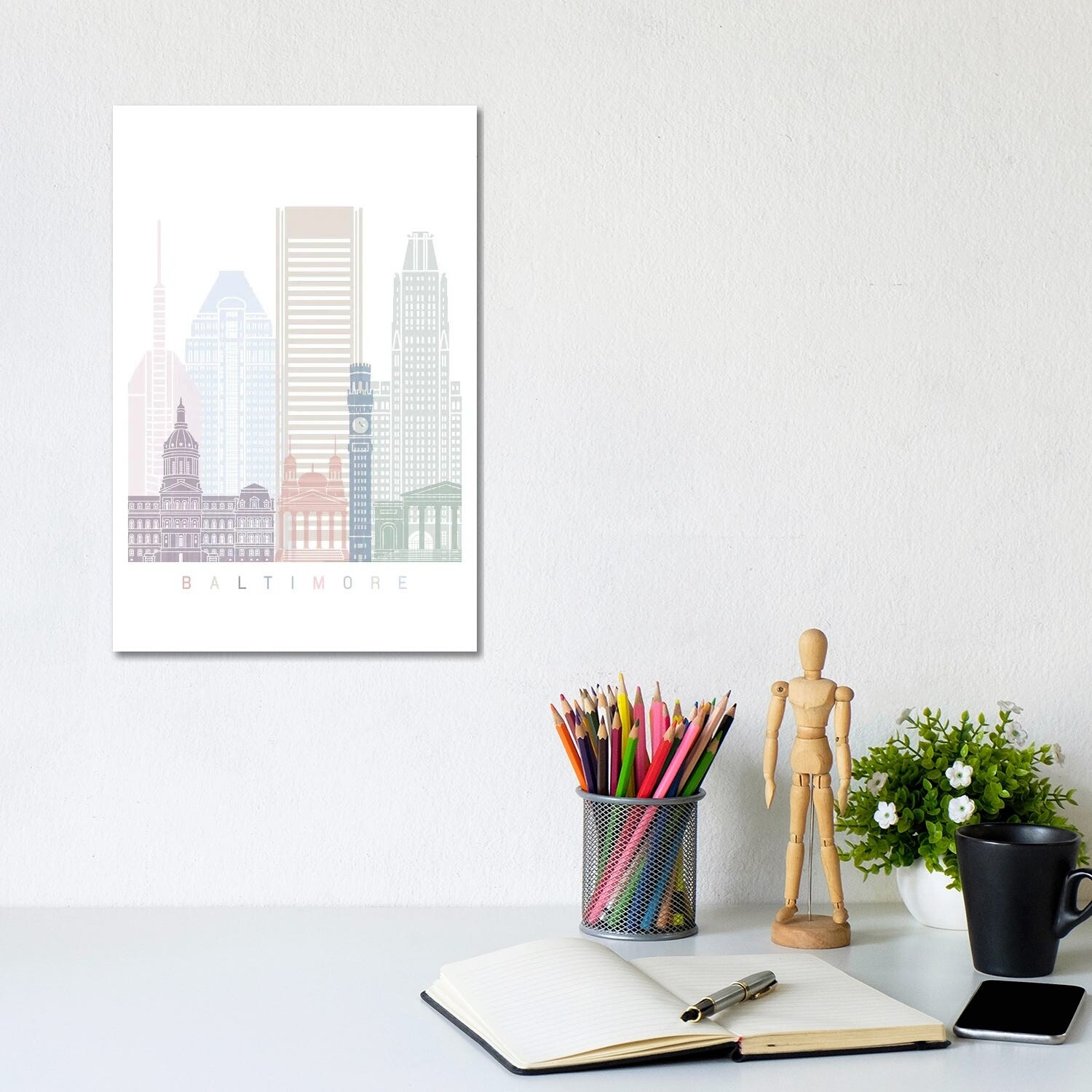 iCanvas "Baltimore Skyline Poster Pastel" by Paul Rommer Canvas Print
