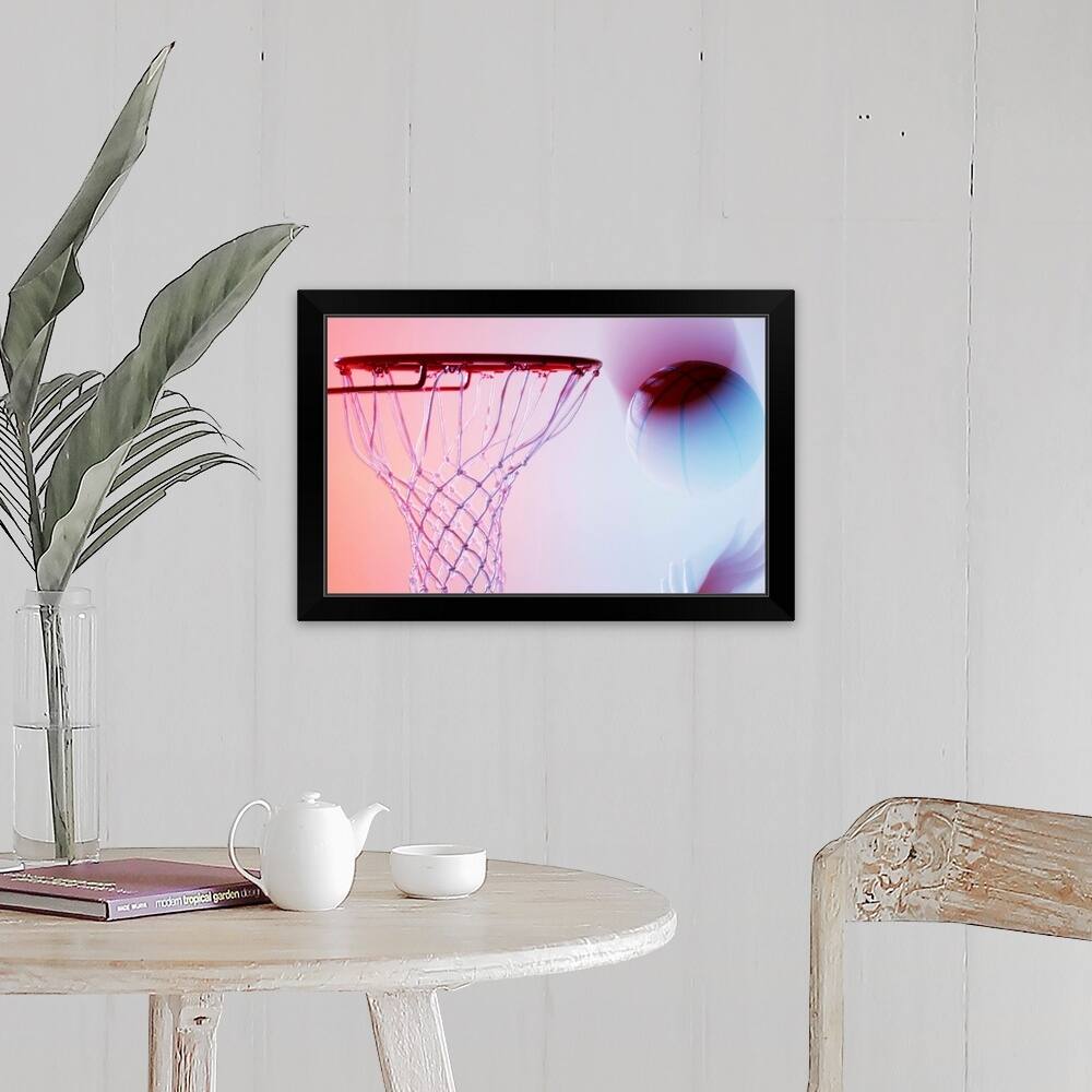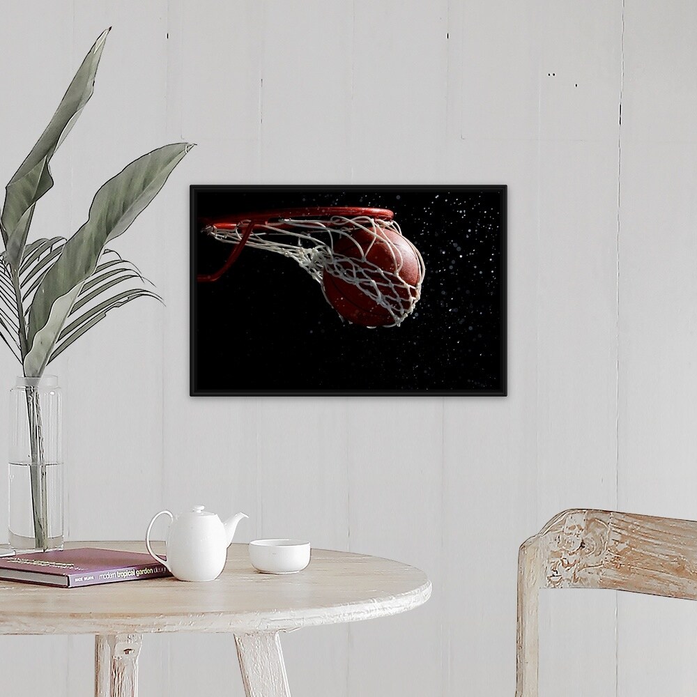 "Basketball going through hoop" Black Float Frame Canvas Art