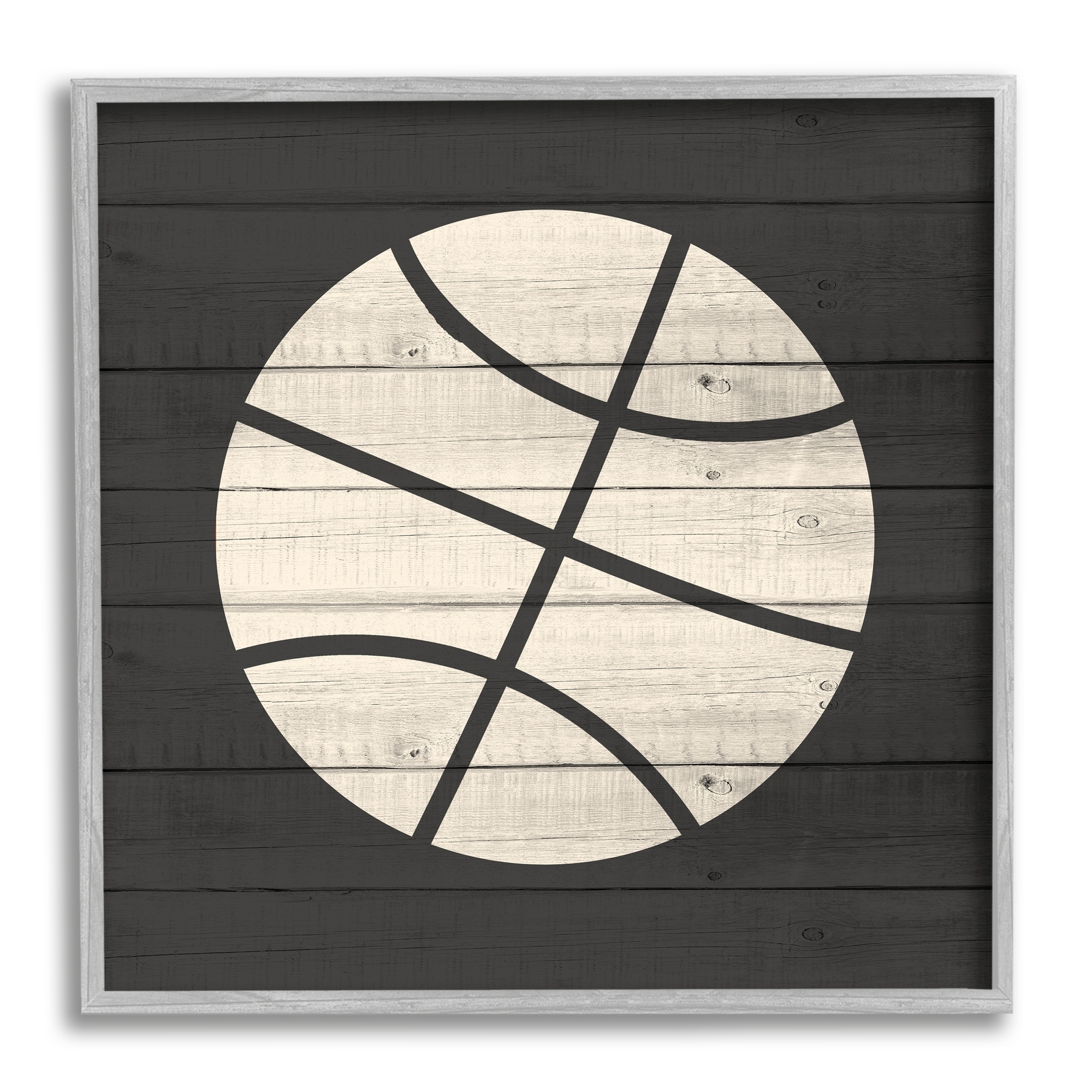 Stupell Industries Basketball Shape Rustic Sports Country Pattern Framed Wall Art - Grey