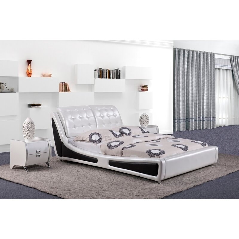 Upholstered Platform Bed with Elegant Flowers Headboard