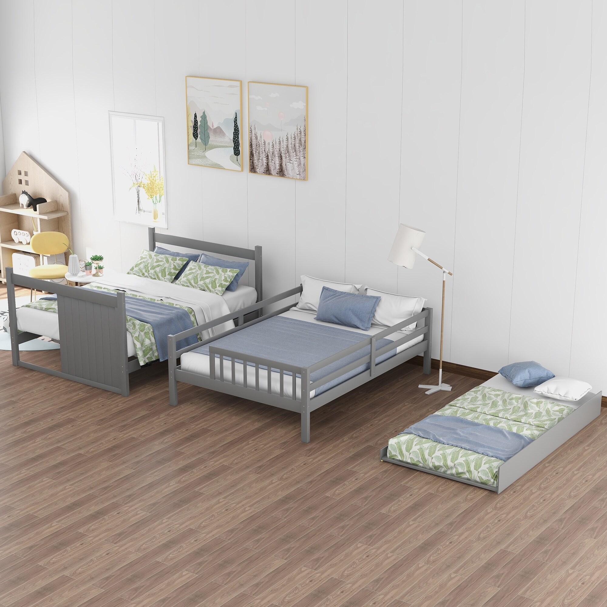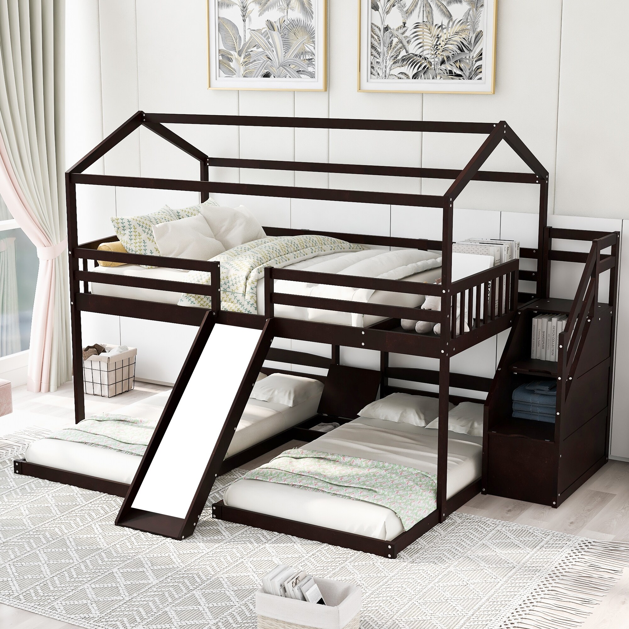 Full over Twin over Twin Bunk Bed with two Twin Down Beds