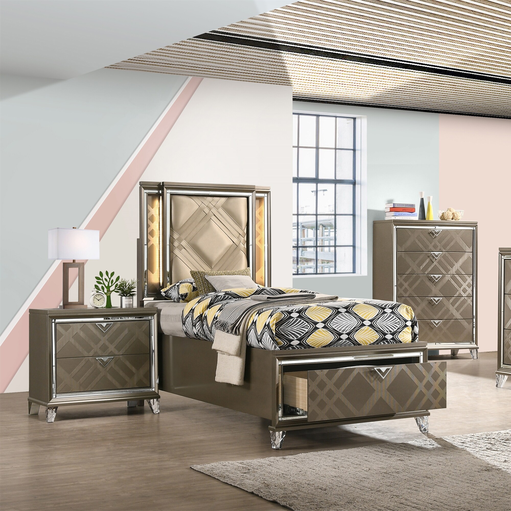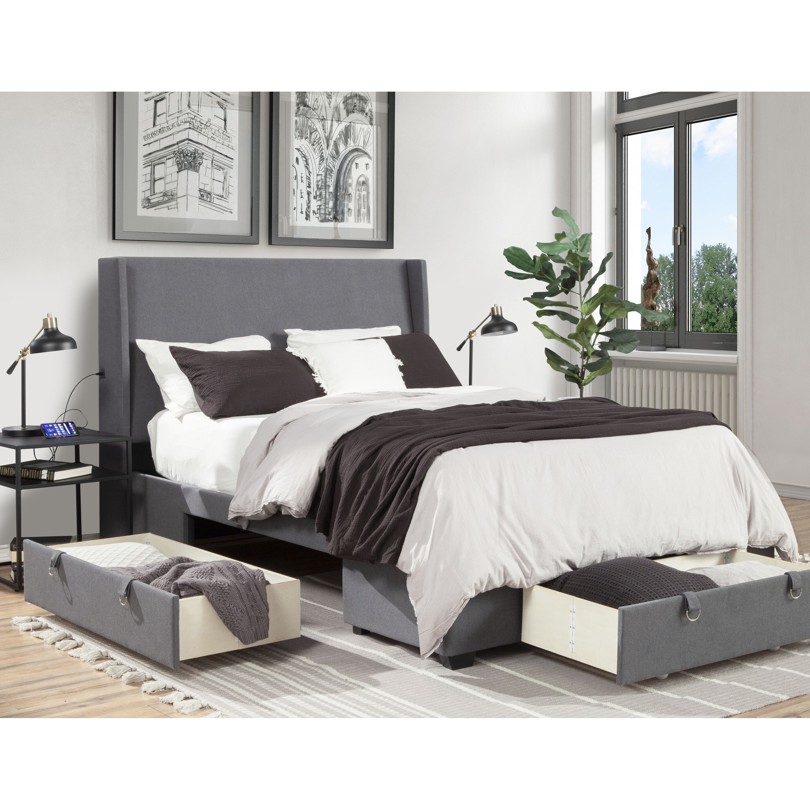 Modern Style Velvet Storage Bed, Cushioned Headboard
