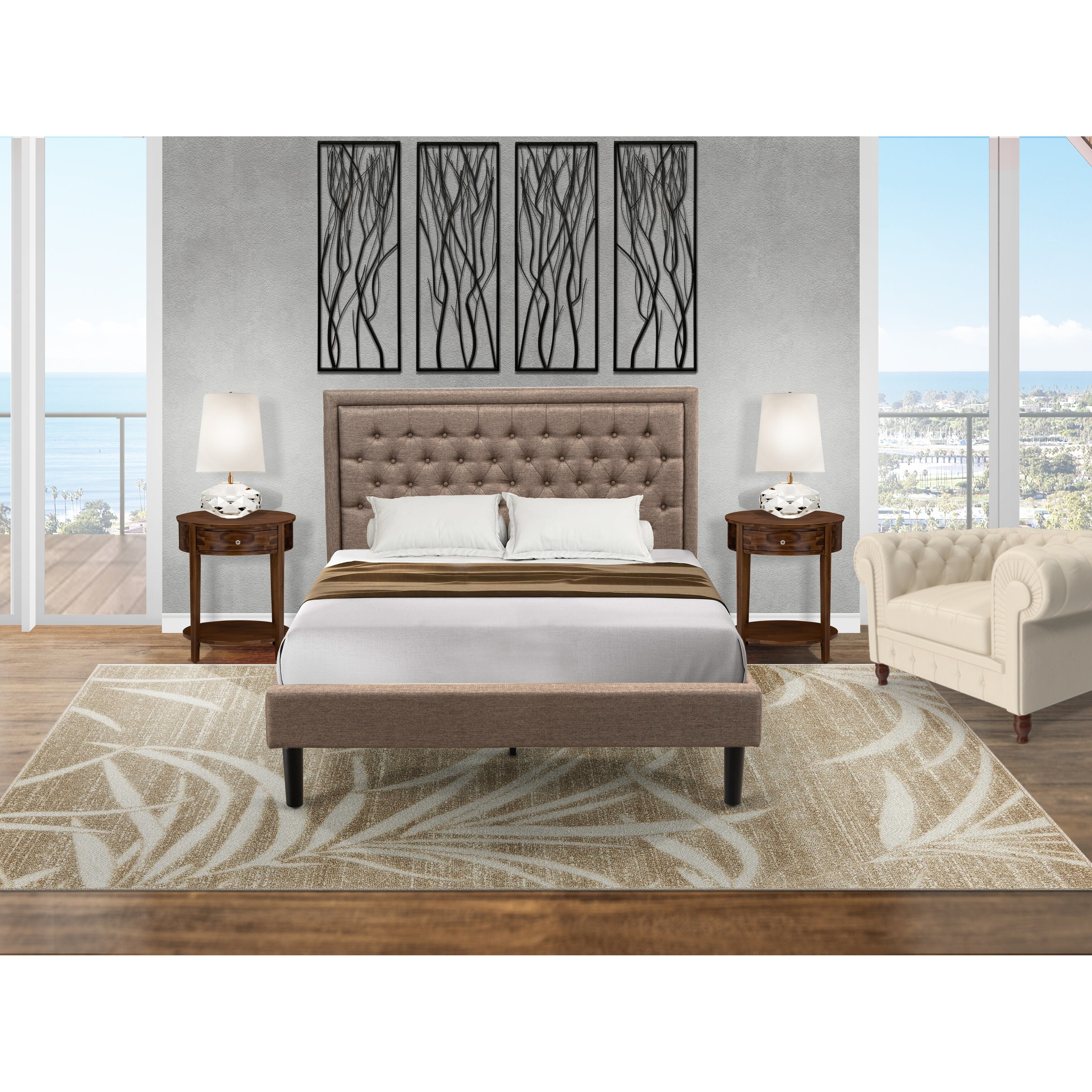 Pc Bed Set - 1 Platform Bed Frame Dark Khaki Linen and Button Tufted Headboard - 2 Nightstand (Bed Size Options)