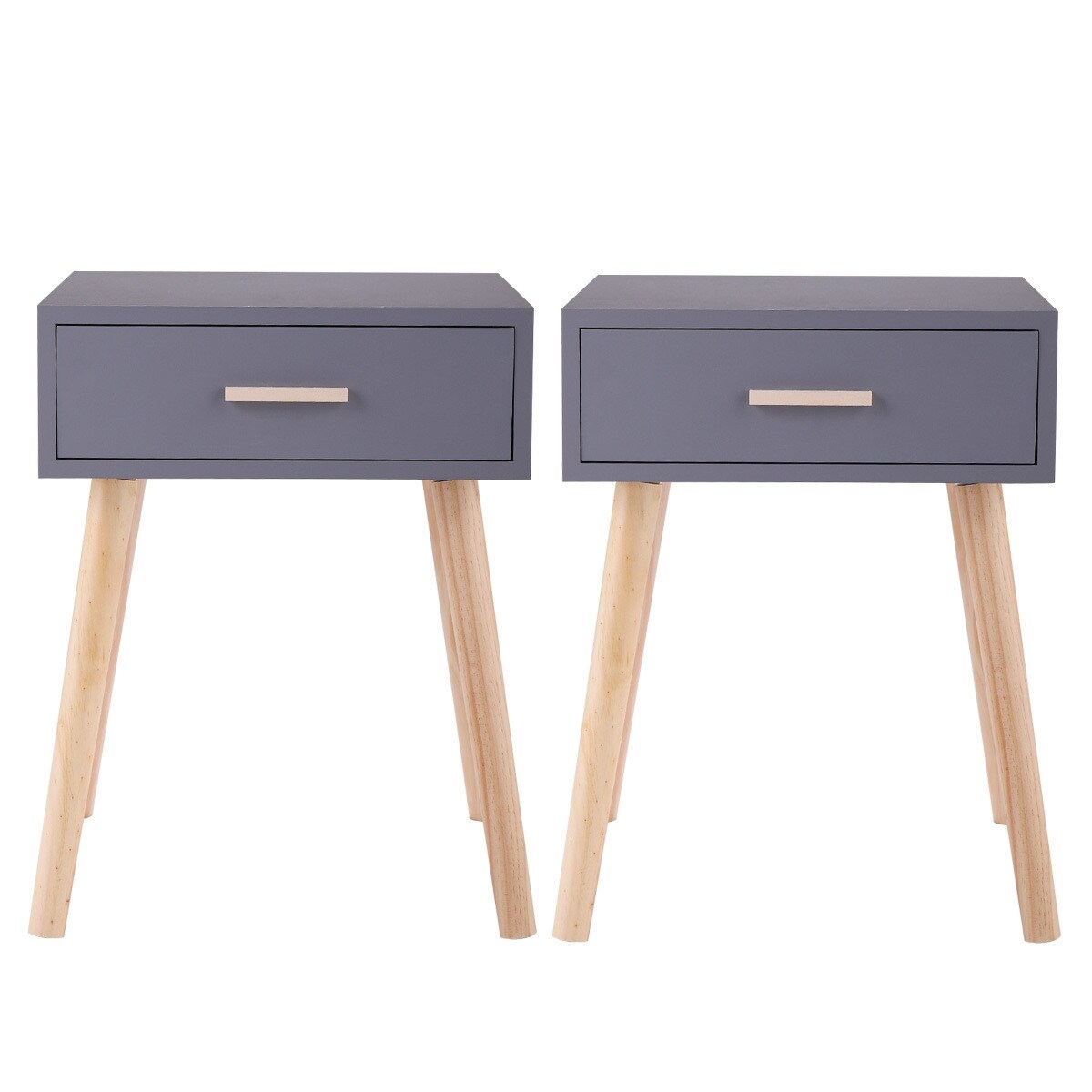 Set of 2 Nightstand with One Drawer, Bedside Table with Pine Legs, Convenient Cabinet, Indoors