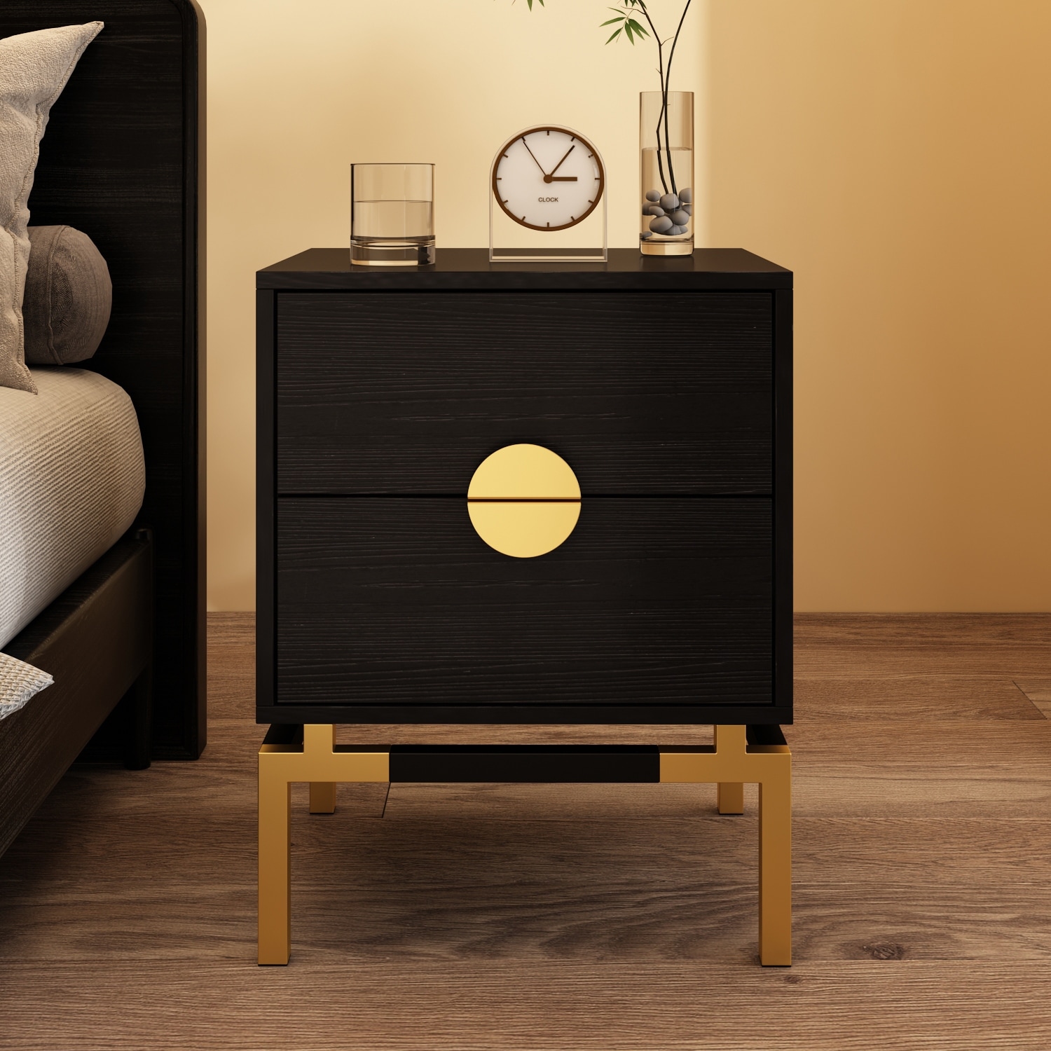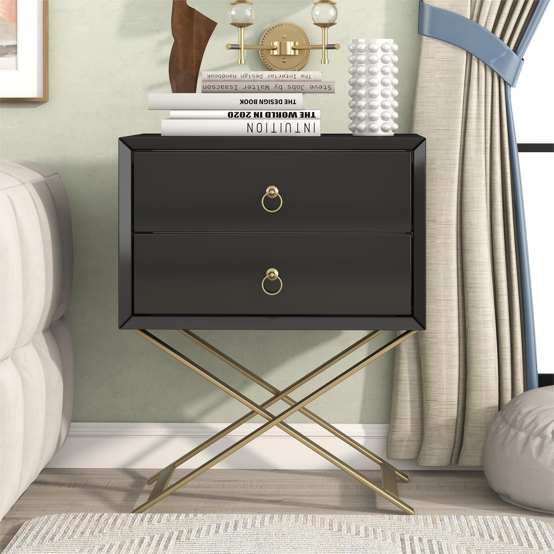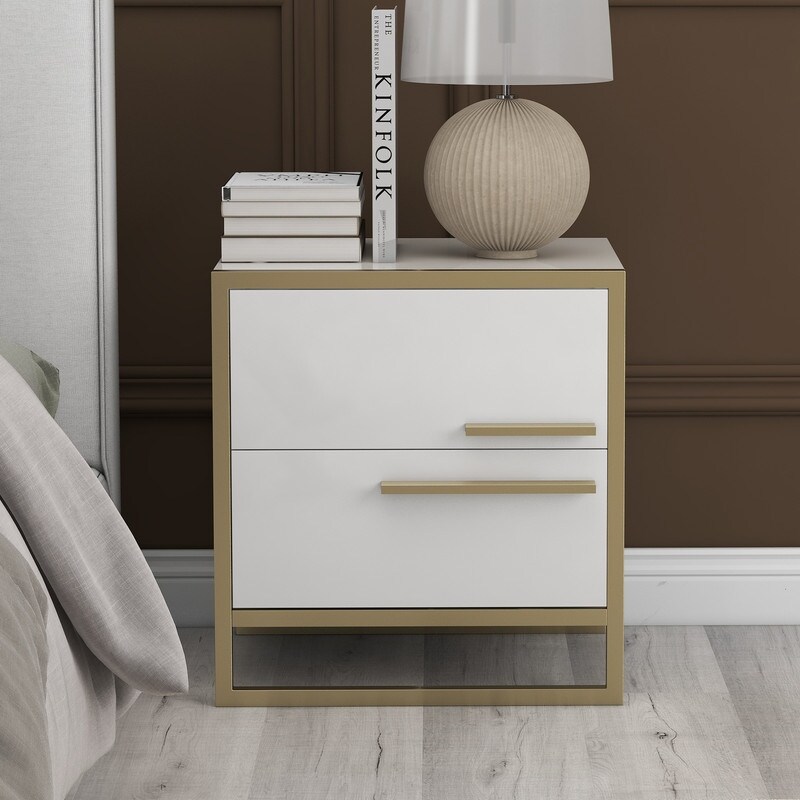 Nightstand with 2 Drawers & Golden Handle,Storage Bedside Table