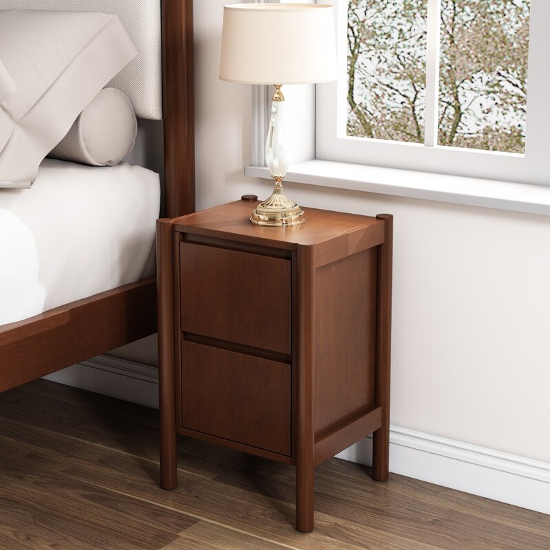 Mid Century Modern Wood 2-Drawer Nightstand Bedside Table