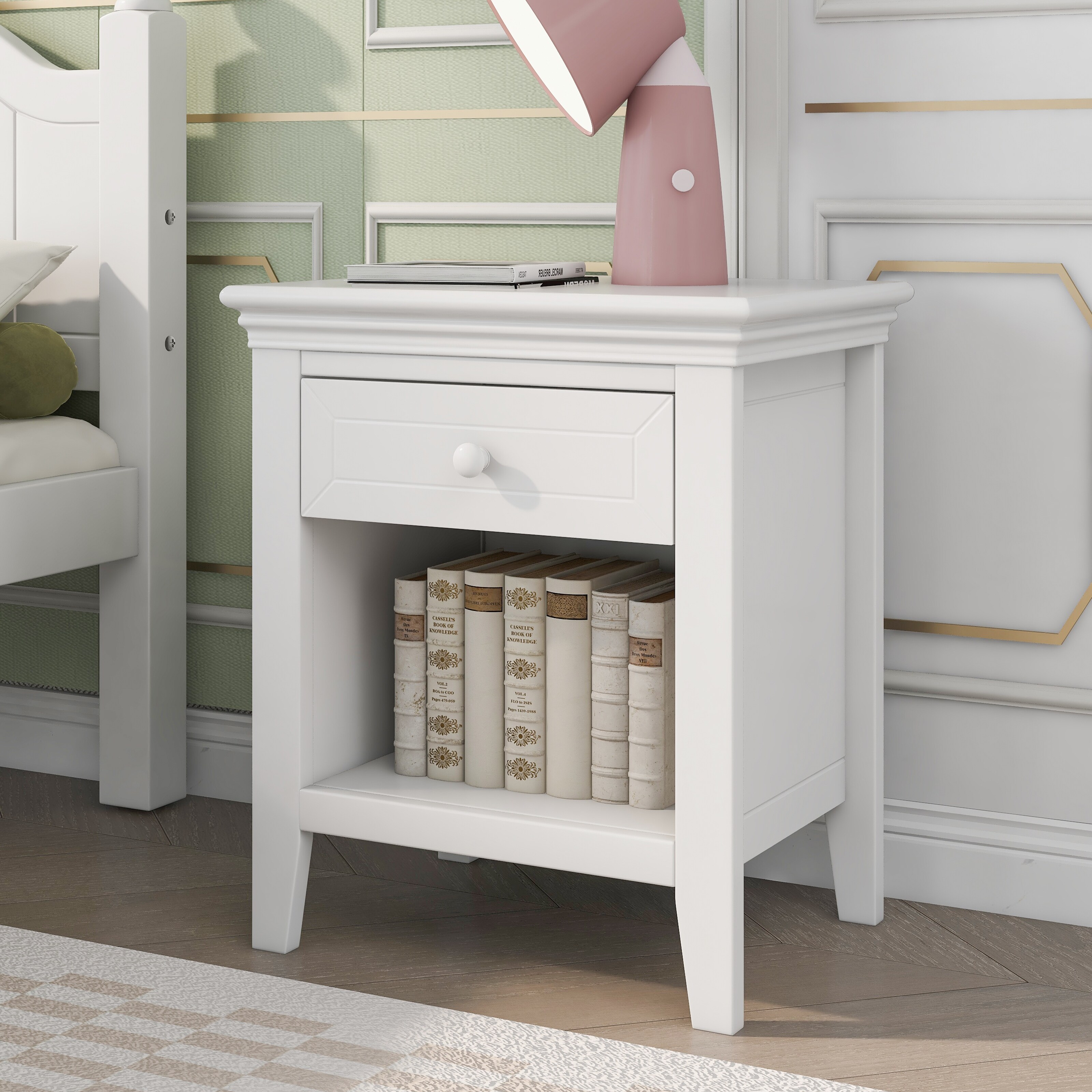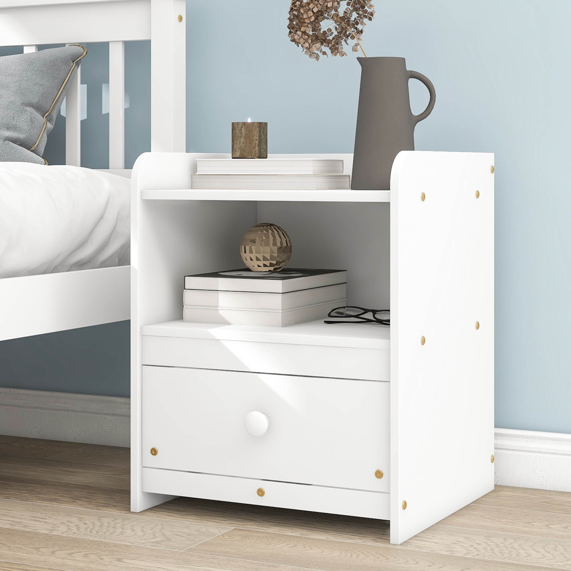 26.75" White Wooden Bedside Table Drawer Cabinet Nightstand