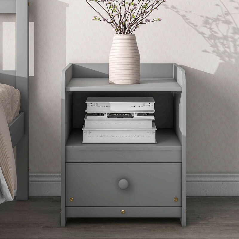 1 Drawer Wood Bedside Table End Table with Storage Open Shelf