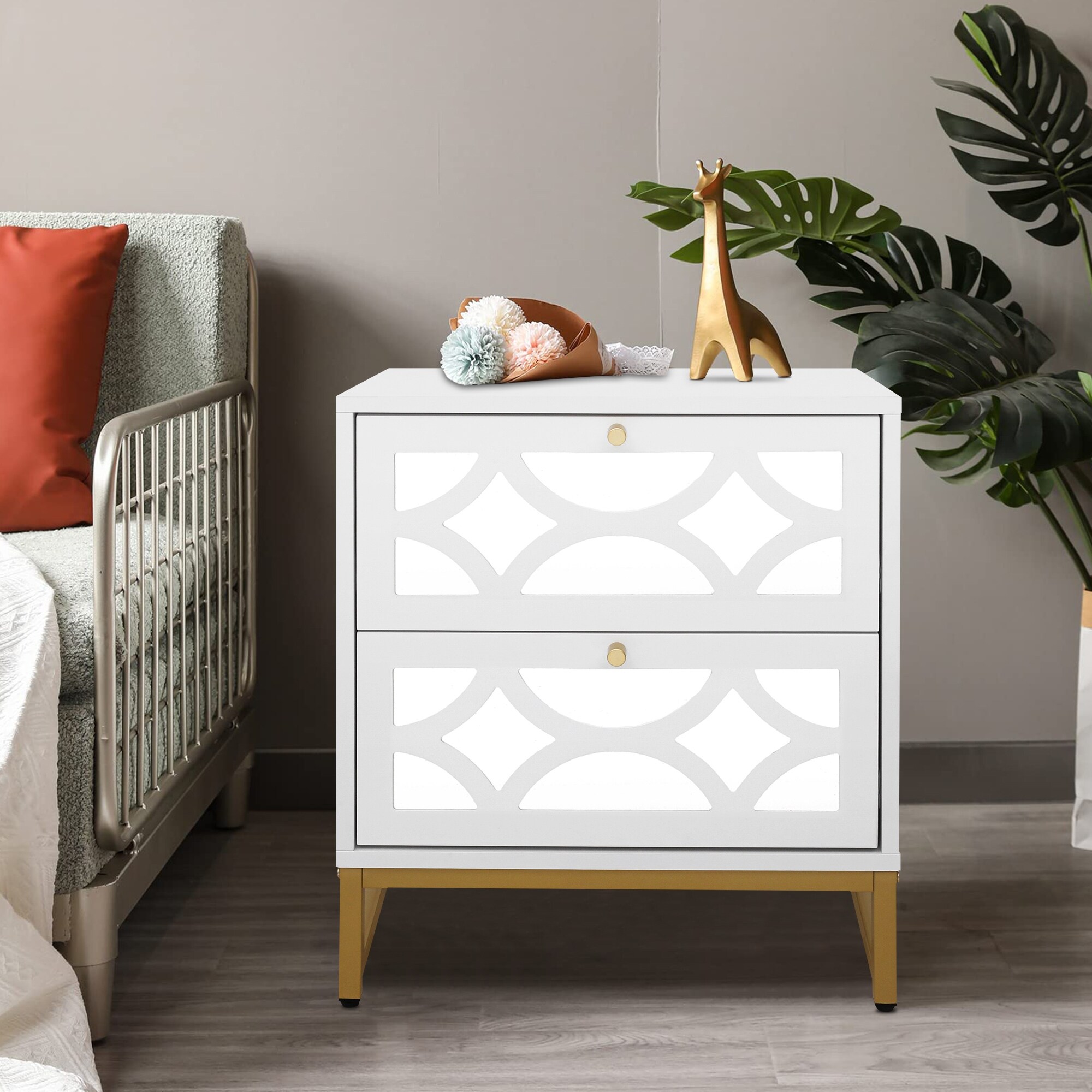22"H Mirrored 2-Drawer Nightstand, Small Bedside Table